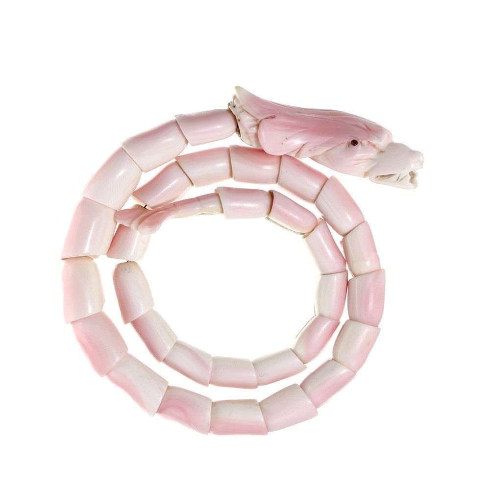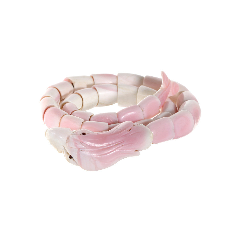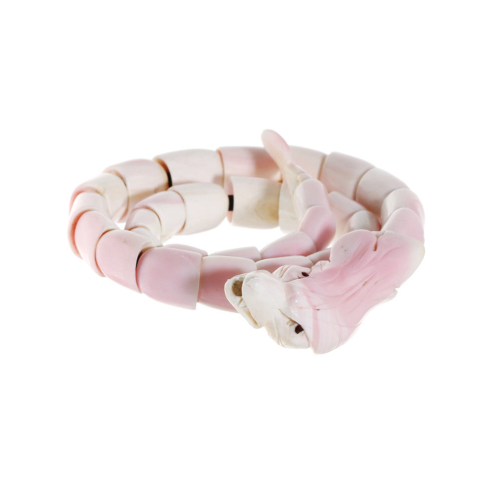 19th century carved conch shell bracelet. A beautifully formed victorian era sea serpent that wraps freely around the wrist, allowing for varied wrist size.