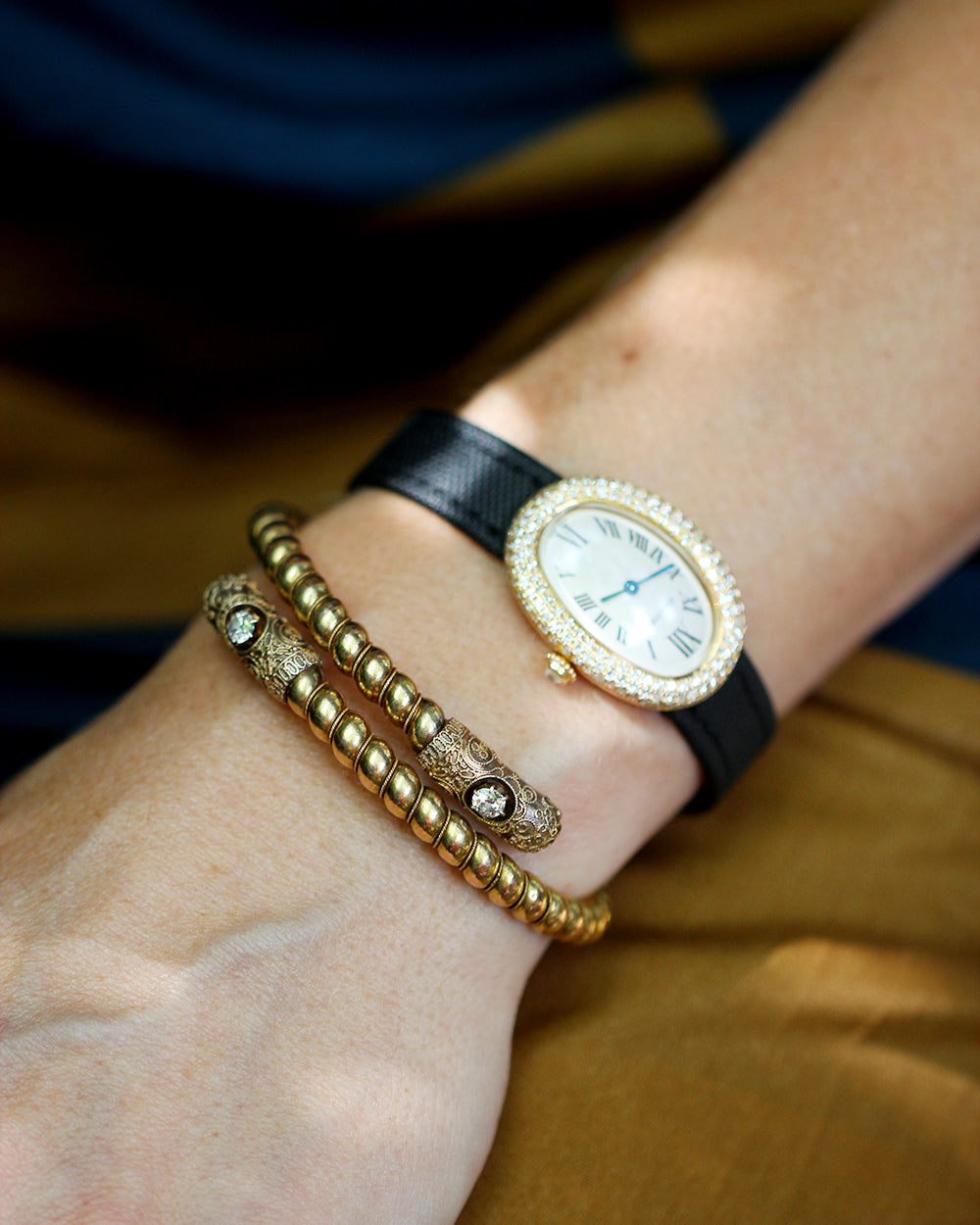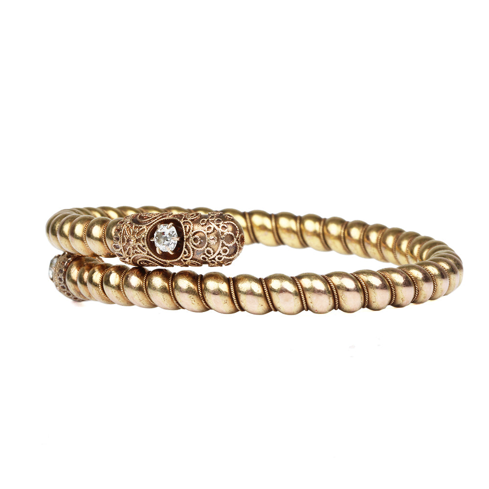 Victorian Old European cut diamond wrap bracelet, in gold. Approximate 0.50 in total carat weight. Bracelet wraps around wrist and can fit most wrist sizes. English in origin. Circa 1890.