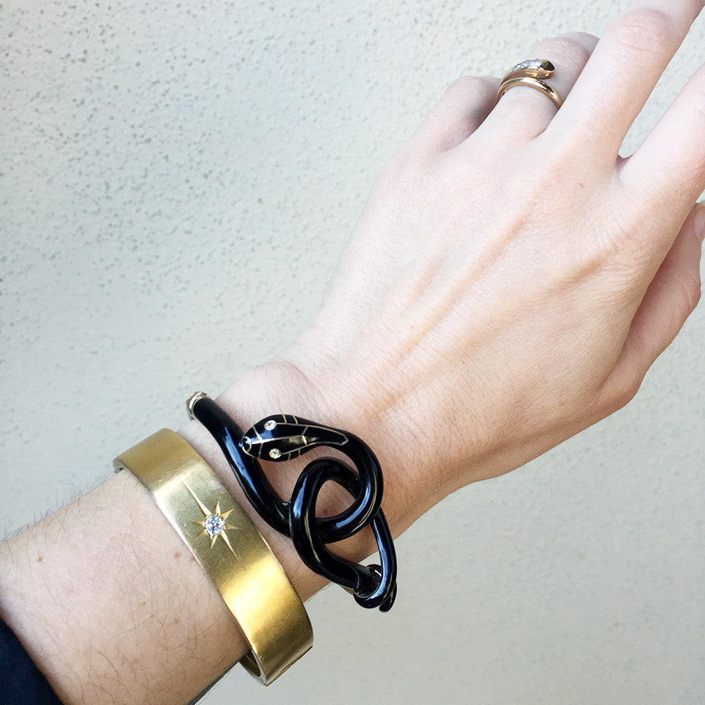 Victorian Enamel Diamond Snake Bracelet