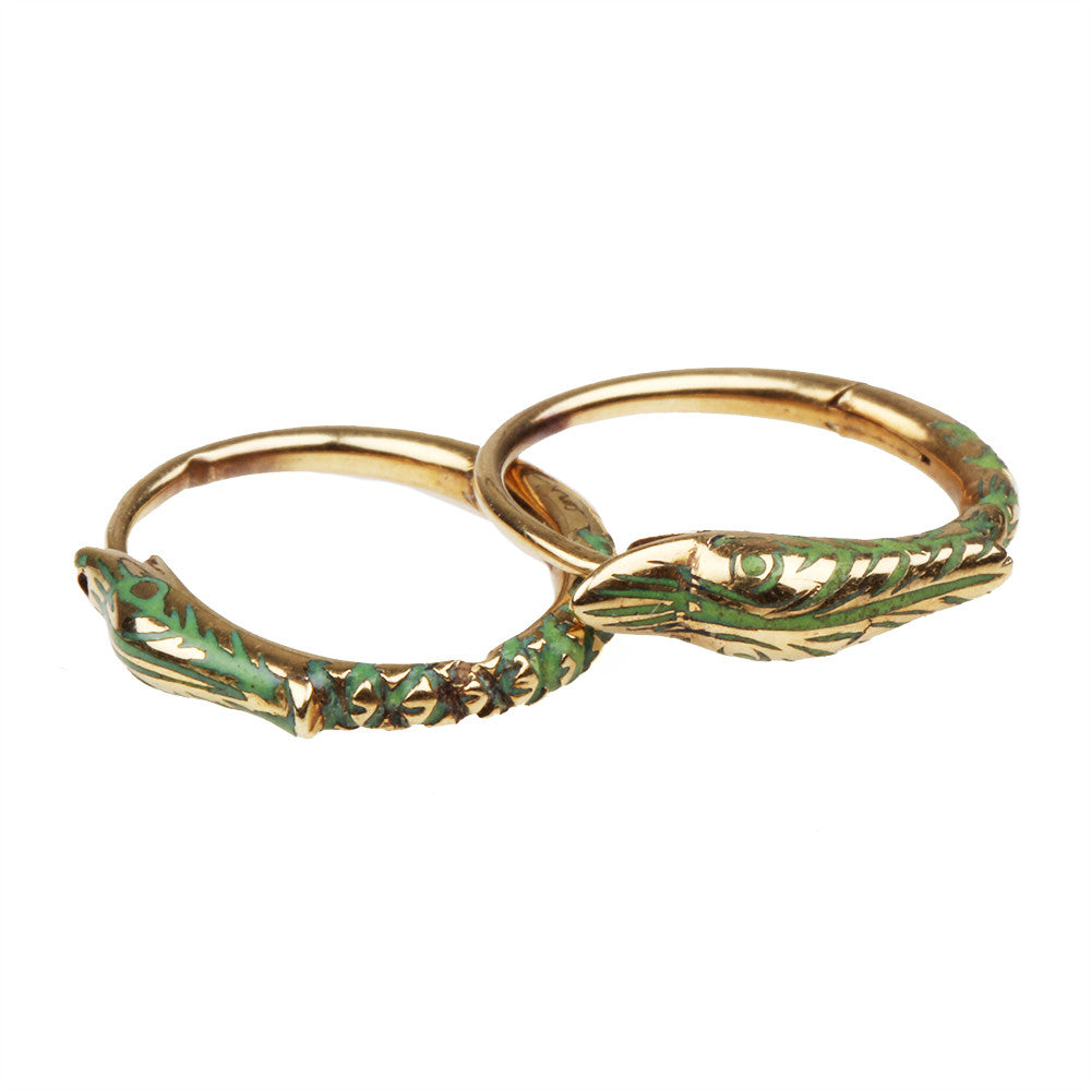Petite Victorian era engraved green enamel ouroboros earrings. The ouroboros snake is symbolic of eternal love and seen often in 19th century jewels. Original back-to-front ear closures.