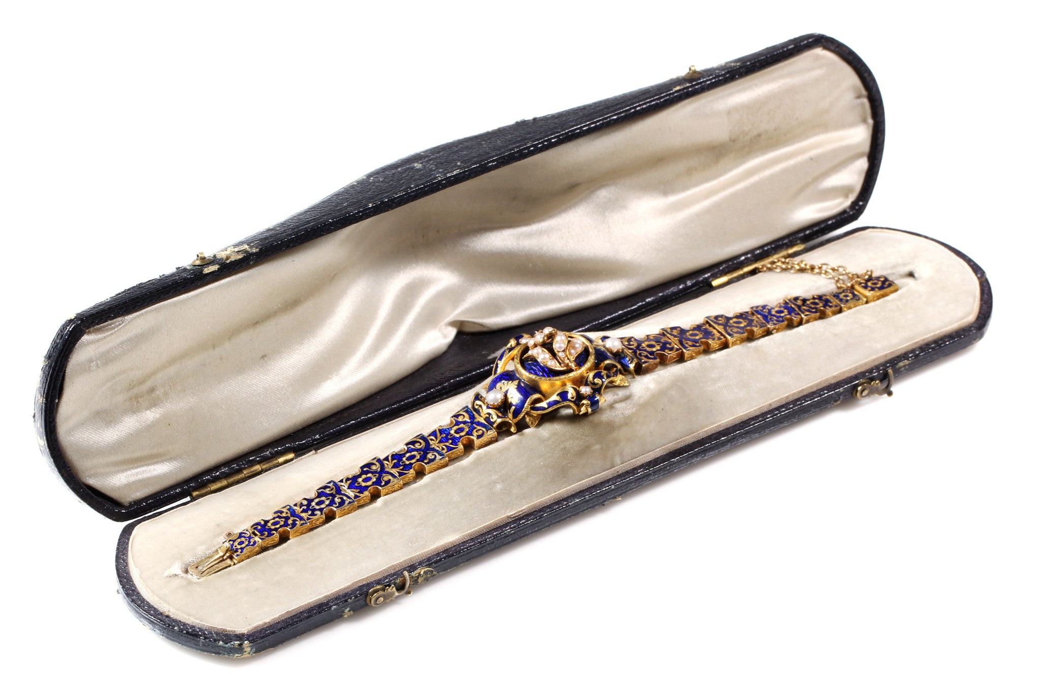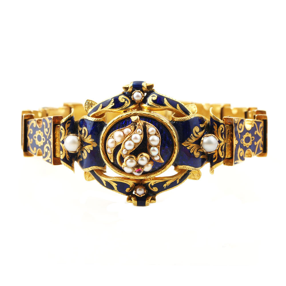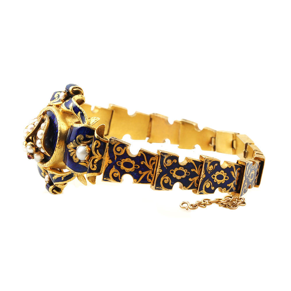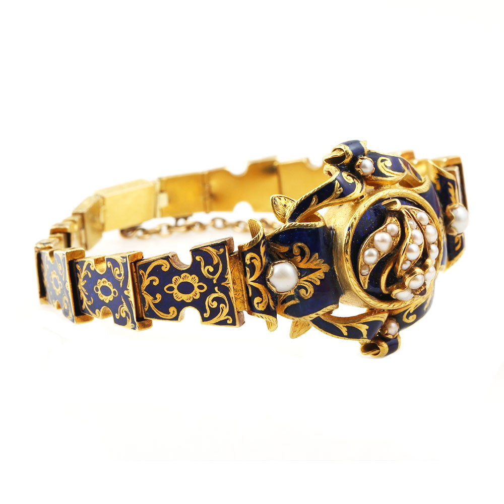 Victorian Gold Enamel & Pearl Locket Bracelet