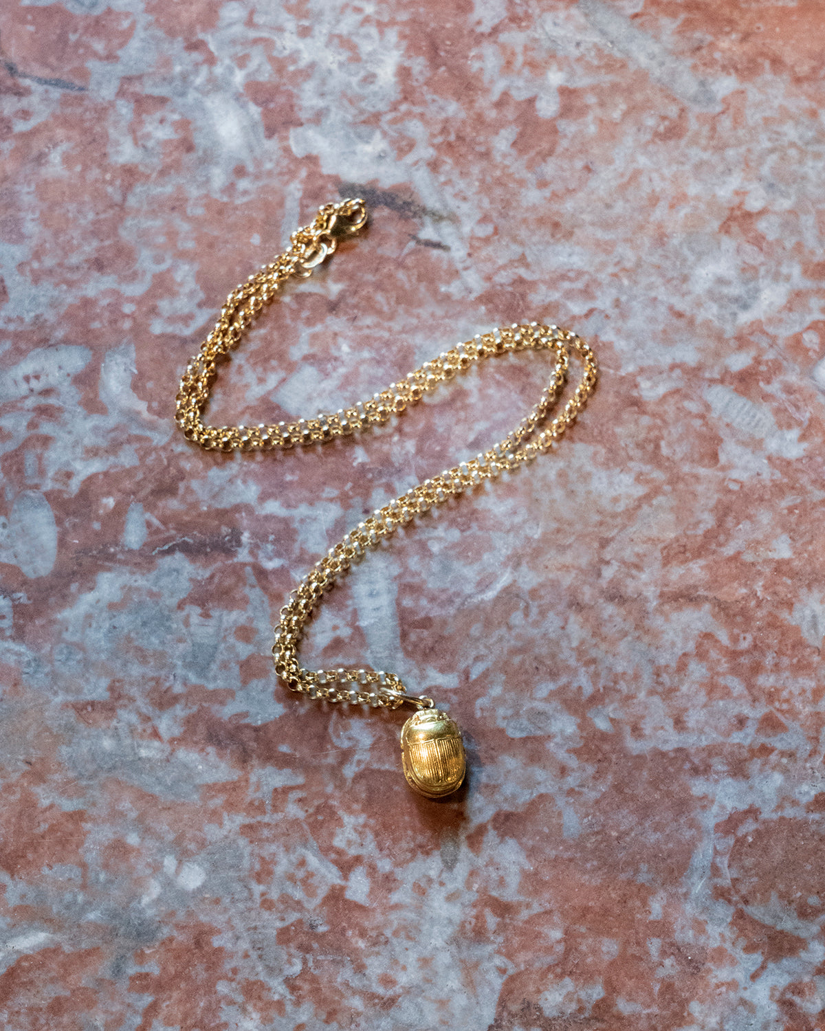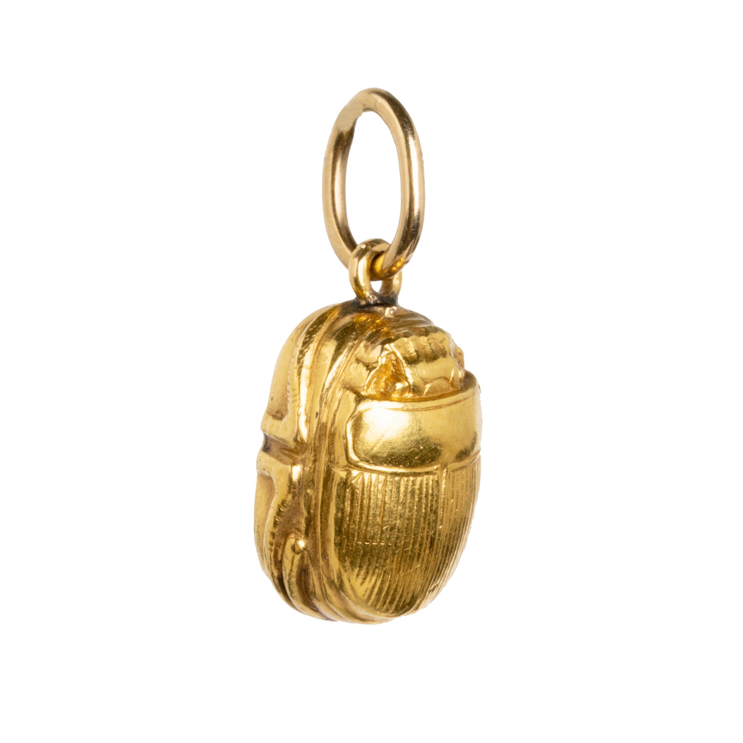 Victorian era scarab pendant, in solid 15k gold. This beautiful crafted small scarab charm. Likely was once part of a larger festoon necklace. English in origin. Circa 1870.
