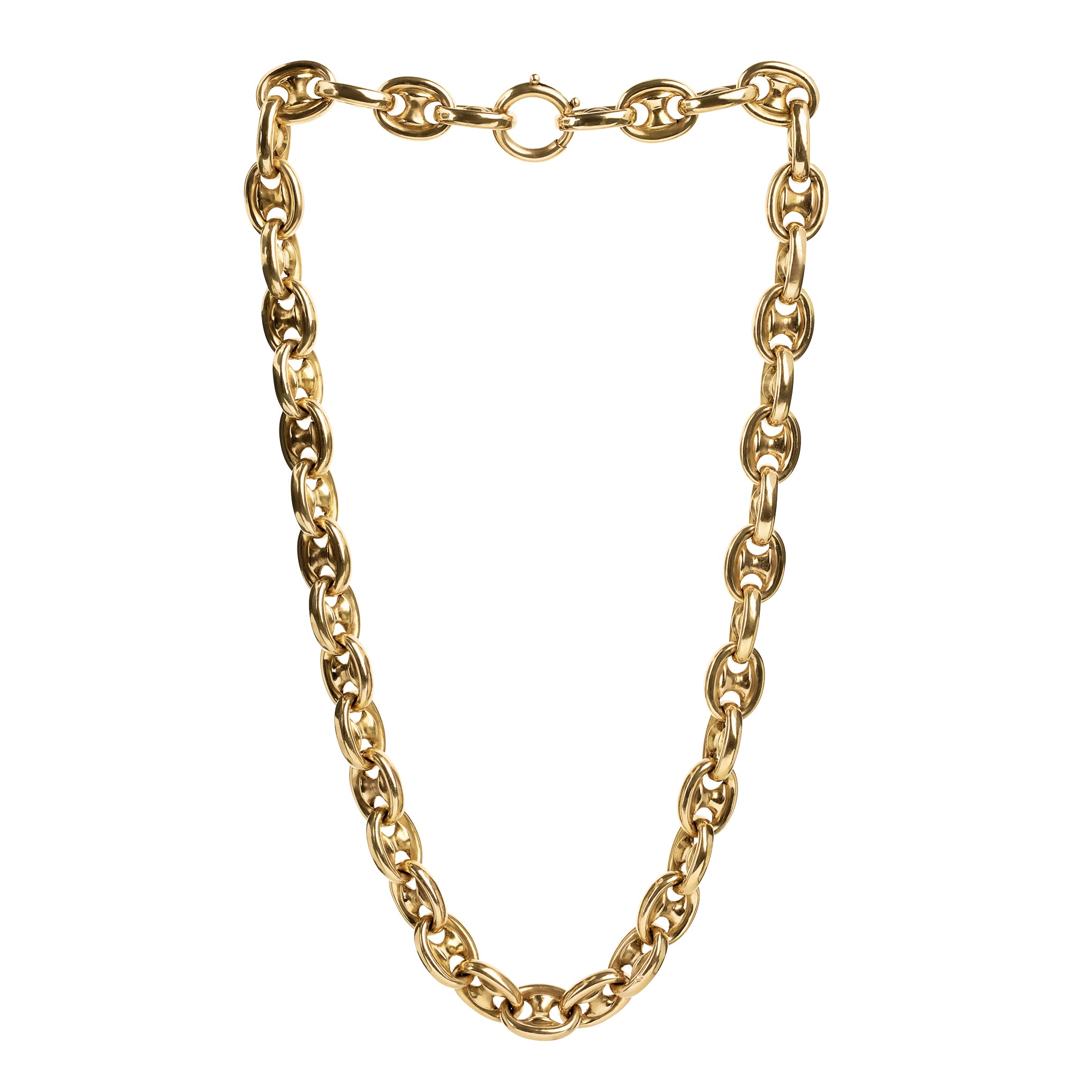Victorian era 18k gold anchor link chain necklace. Bold look with hollow links making the necklace lightweight. The original clasp allows for a pendant or locket to be attached. England. Circa 1880.