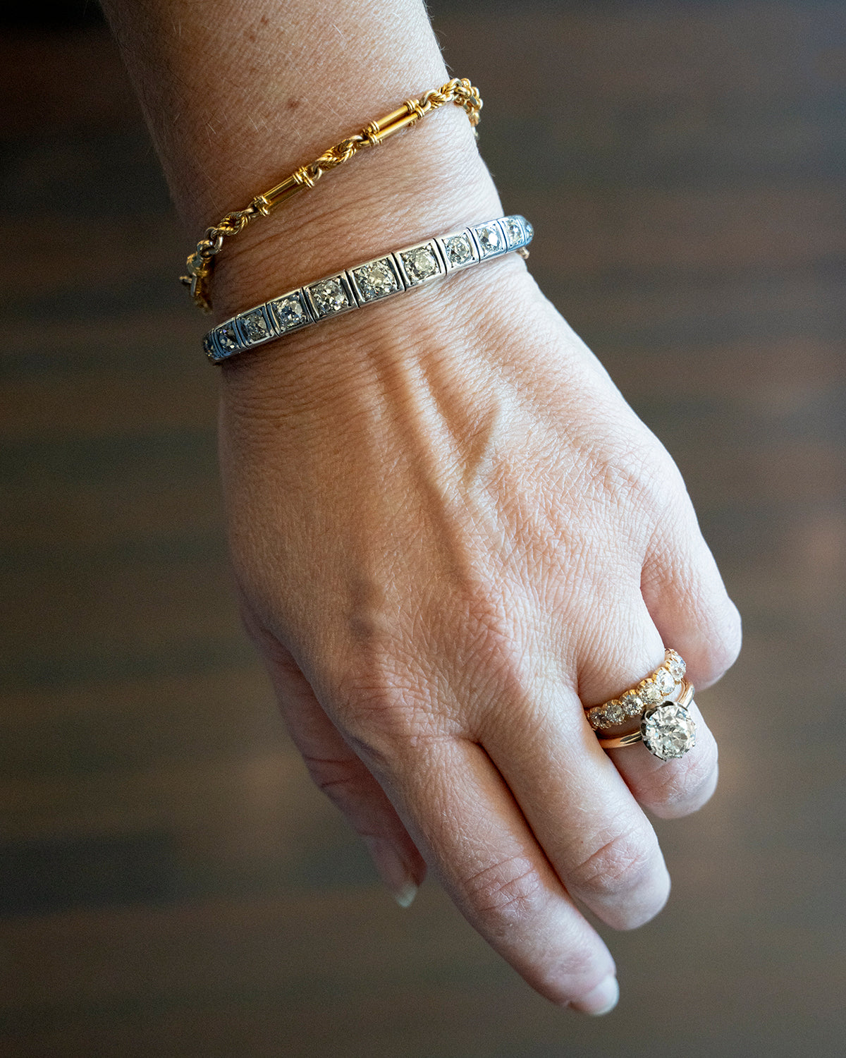 Gold swivel clasp. The bracelet measures 7.50" in total length. Each link measures .75" in length. Can be shortened to customize the fit.