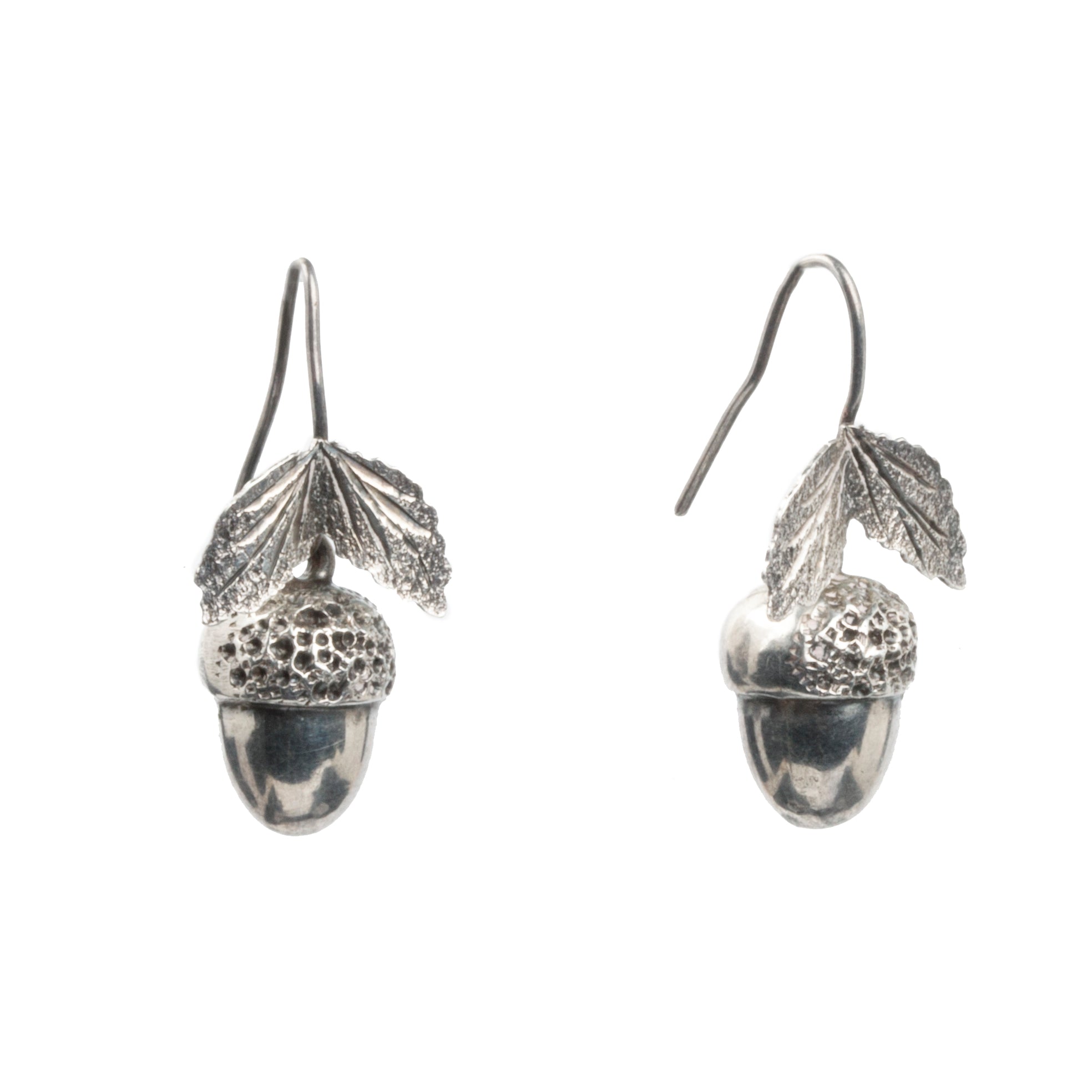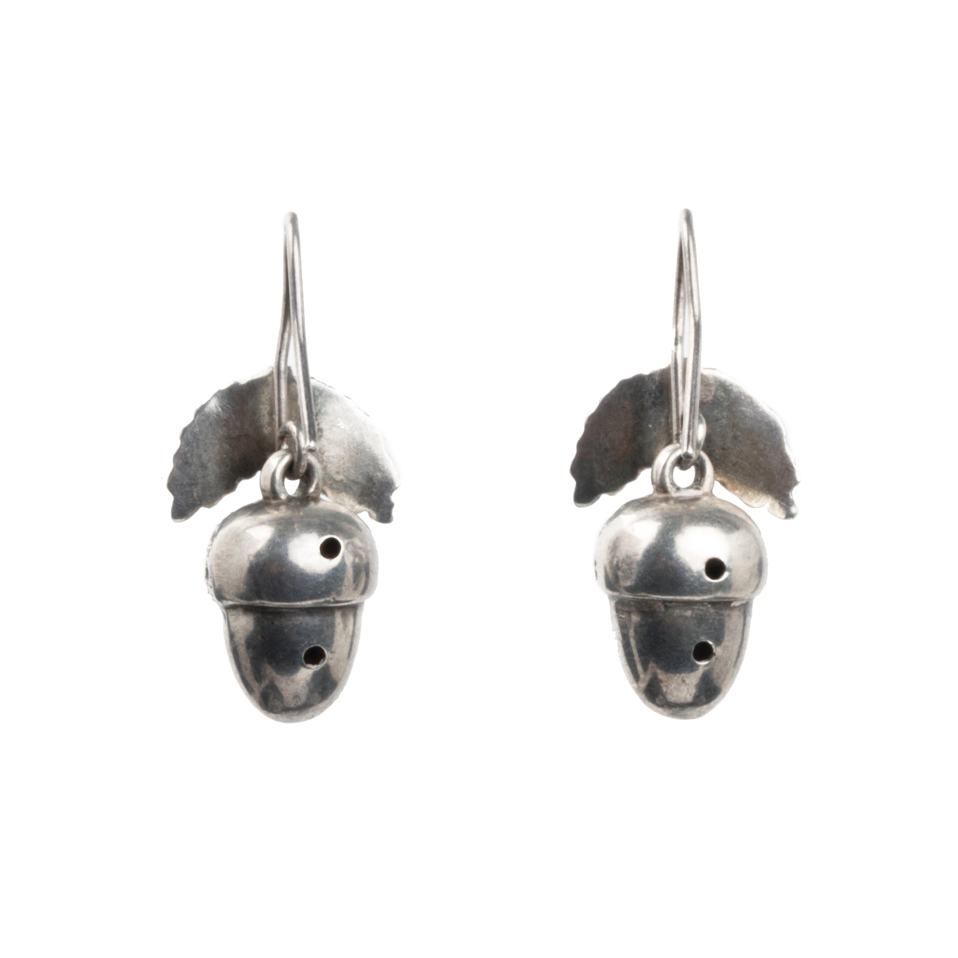 Petite Victorian era acorn and leaf silver earring. The acorn was symbolic of strength and prosperity. English in origin. Circa 1880.