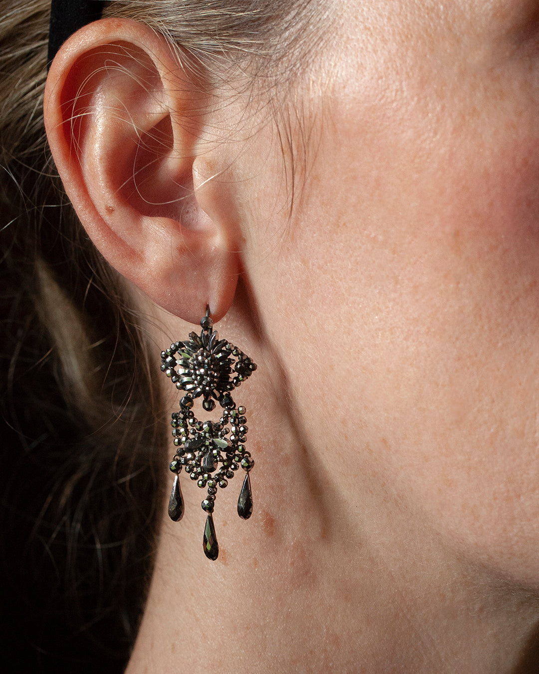 Cut steel was used as a remarkably effective substitution for rose cut diamonds. Its popularity endured well into the 19th century as the subdued color was considered appropriate for second stage mourning adornment.