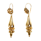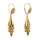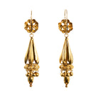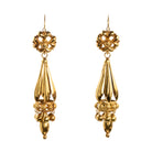 Victorian era gold drop and tassel earrings, in 18k gold. Day and Night design allows the tops to be worn alone. English in origin. Circa 1840.