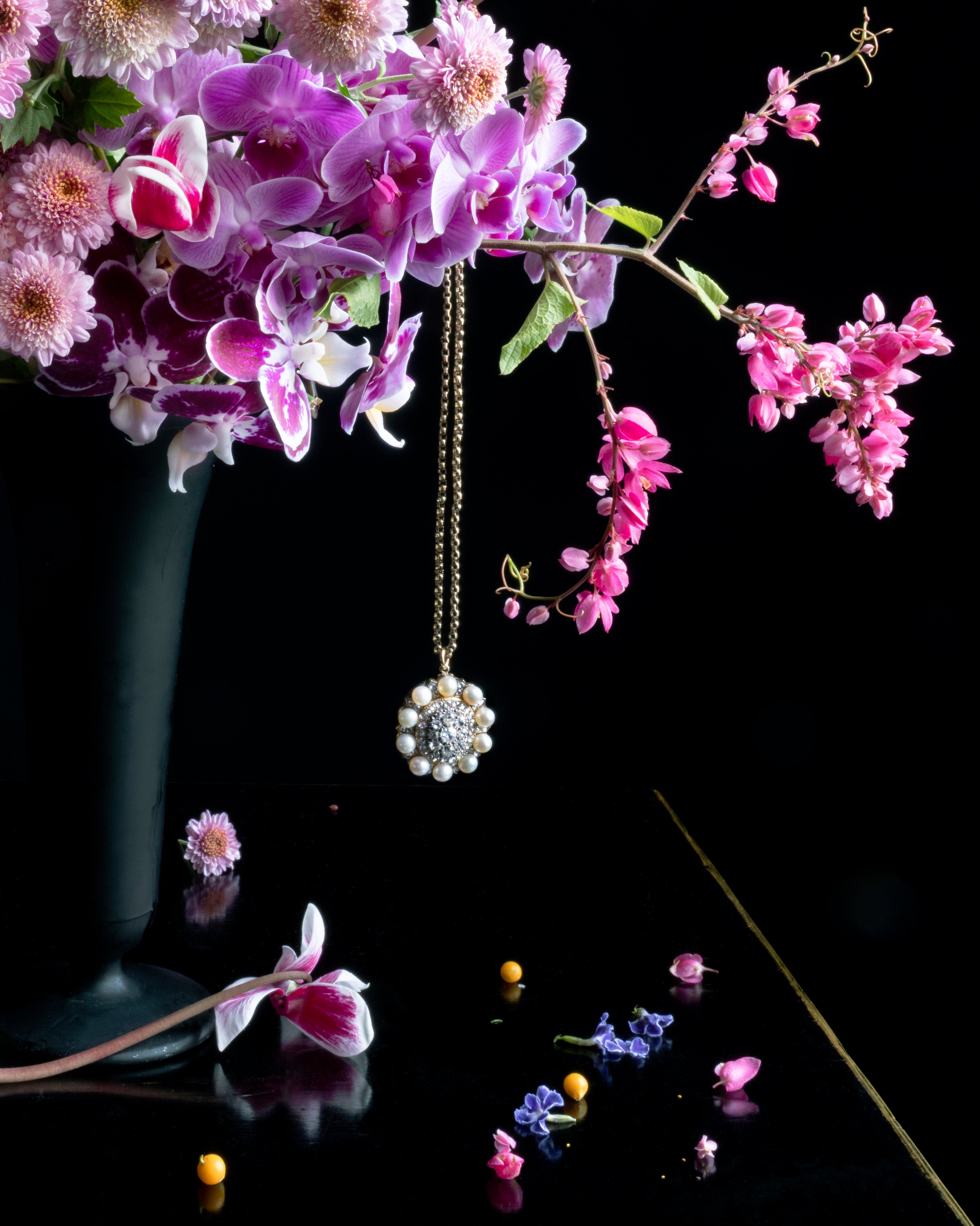 Victorian era diamond and pearl cluster pendant