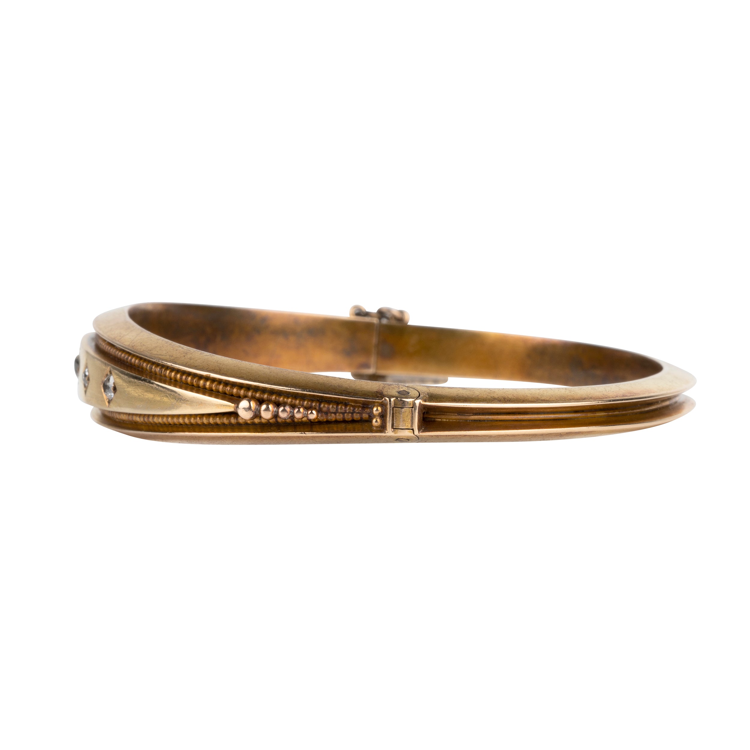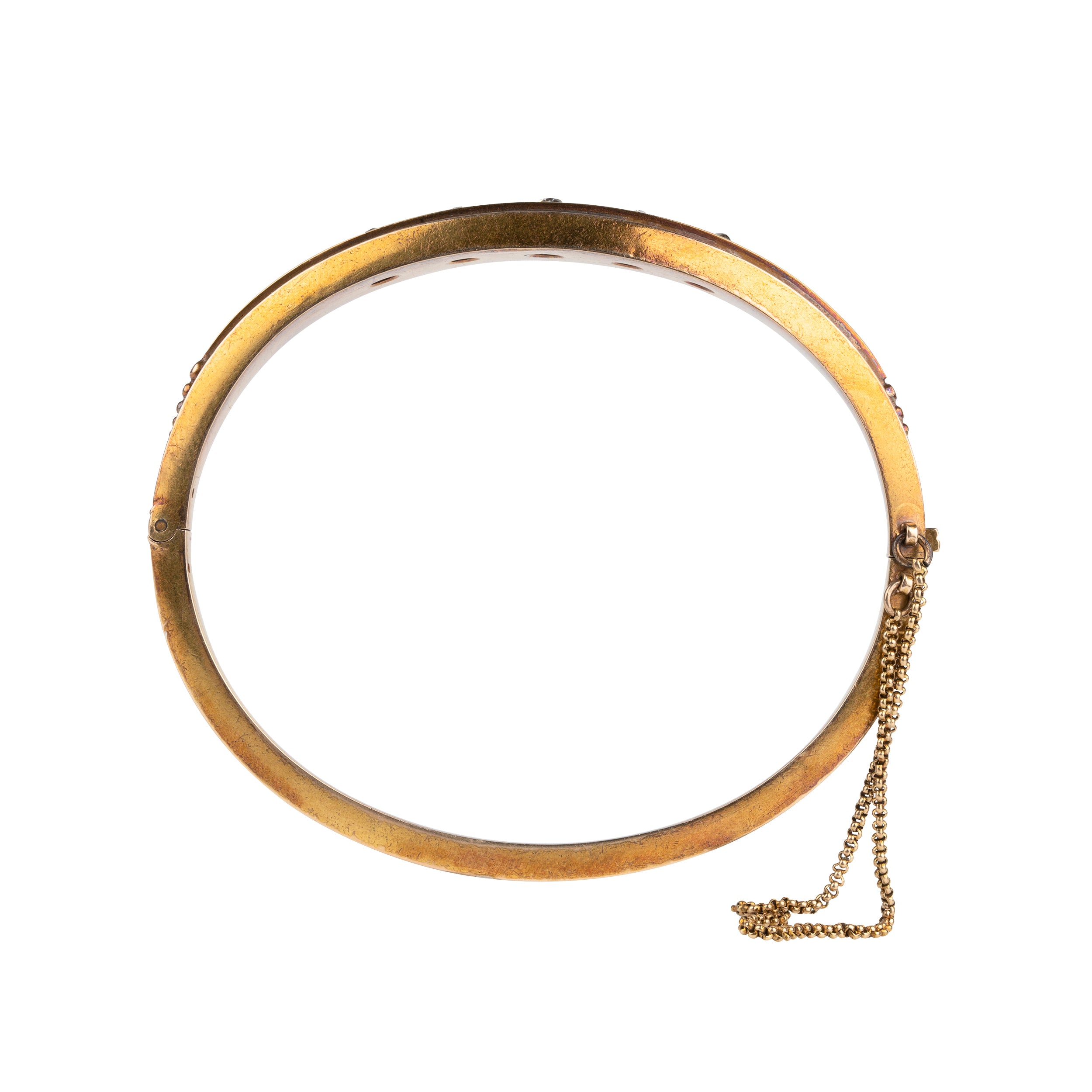 Hidden push clasp with safety chain. The bracelet measures 6.50 inches and .40 inches wide.