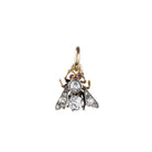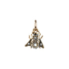 Old mine-cut diamonds are set in silver on gold, creating a very realistic charm. Every detail is attended to, 15k gold legs and ruby cabochon eyes.