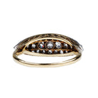Victorian era diamond navette shaped ring, set with old mine cut and rose cut diamonds. Circa 1860-1870, English in origin. 18k gold and silver.