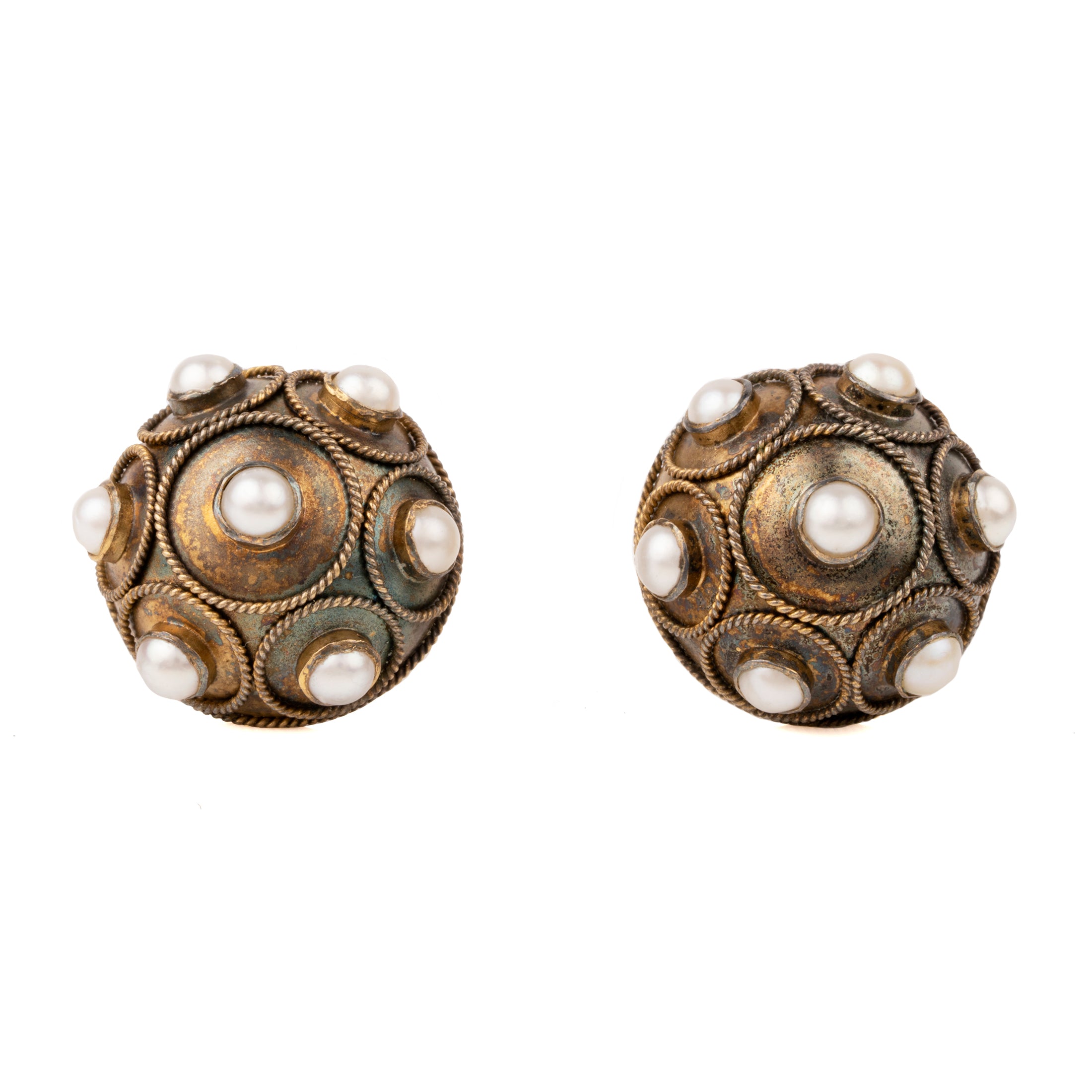 Victorian Era Etruscan Revival Pearl Earrings