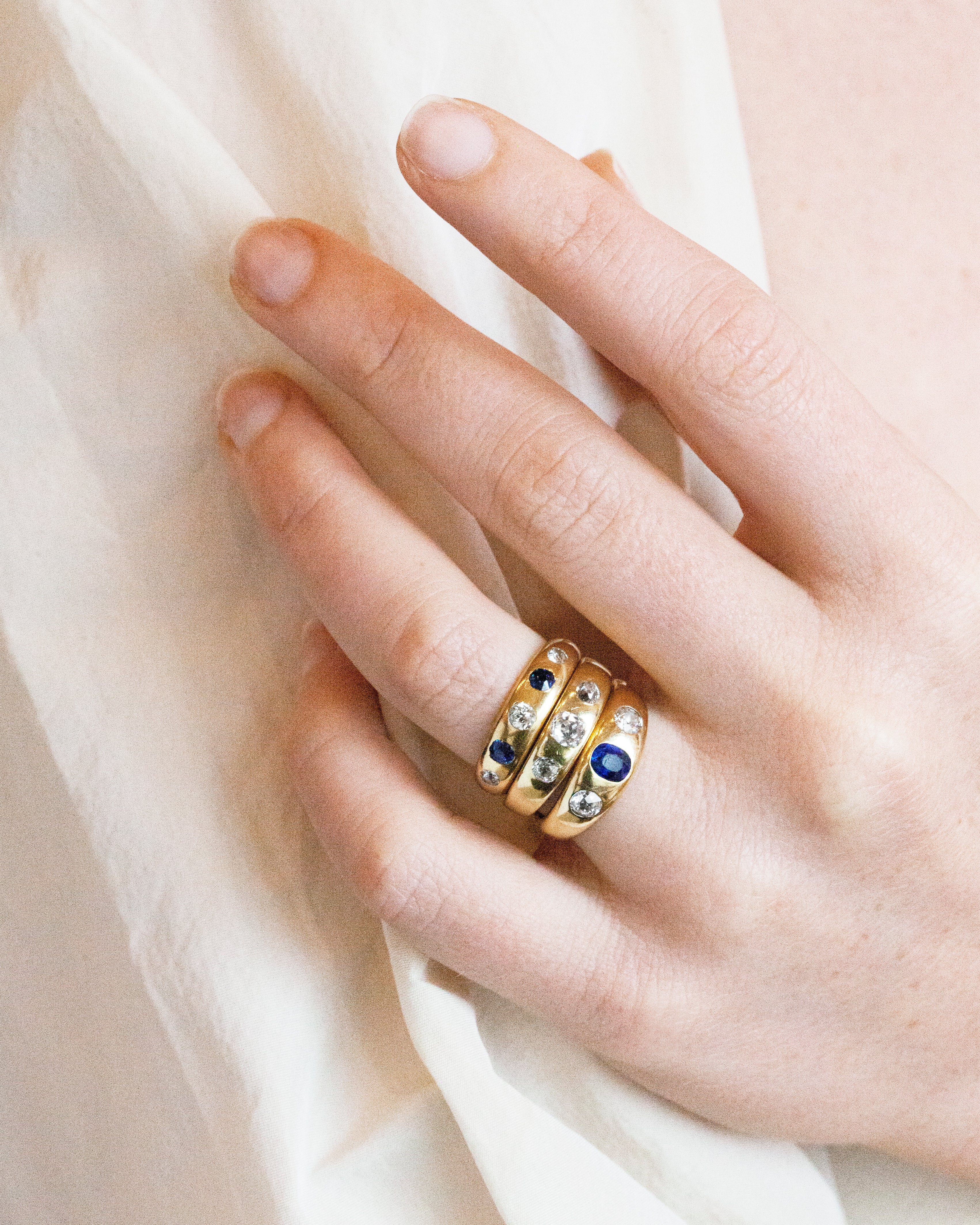 Size 6.5, can be resized. Pictured with two other Victorian Era flush set diamond and sapphire rings.