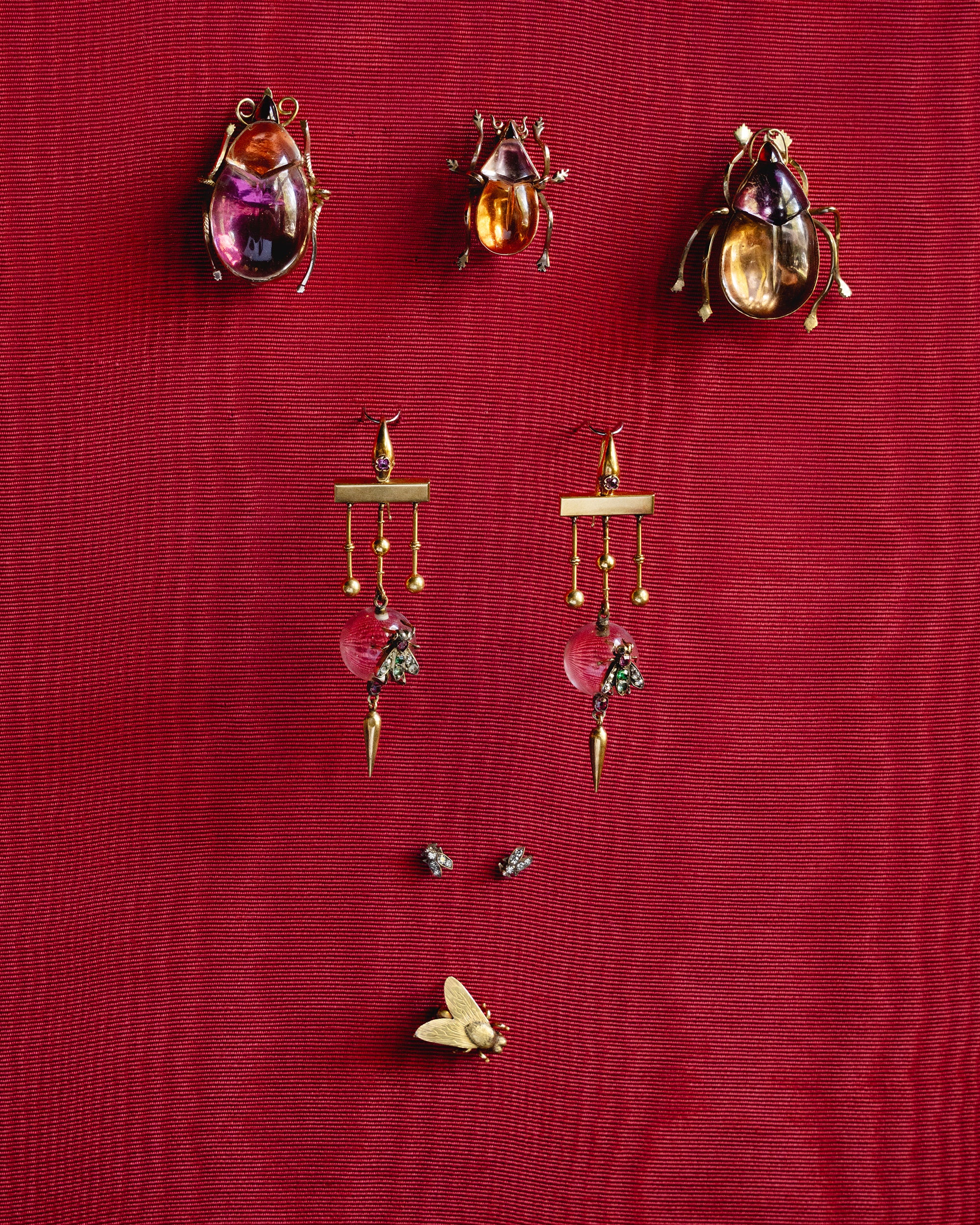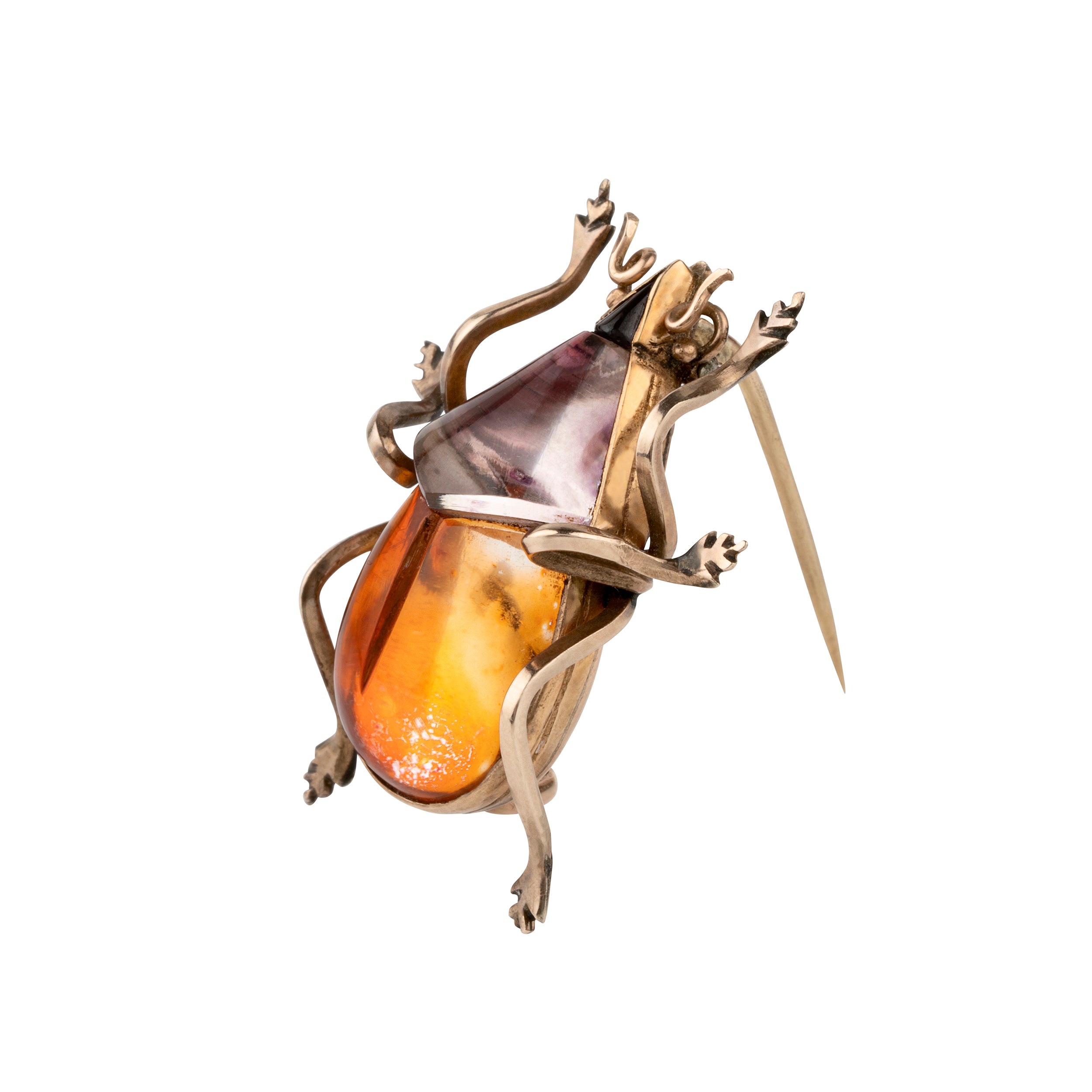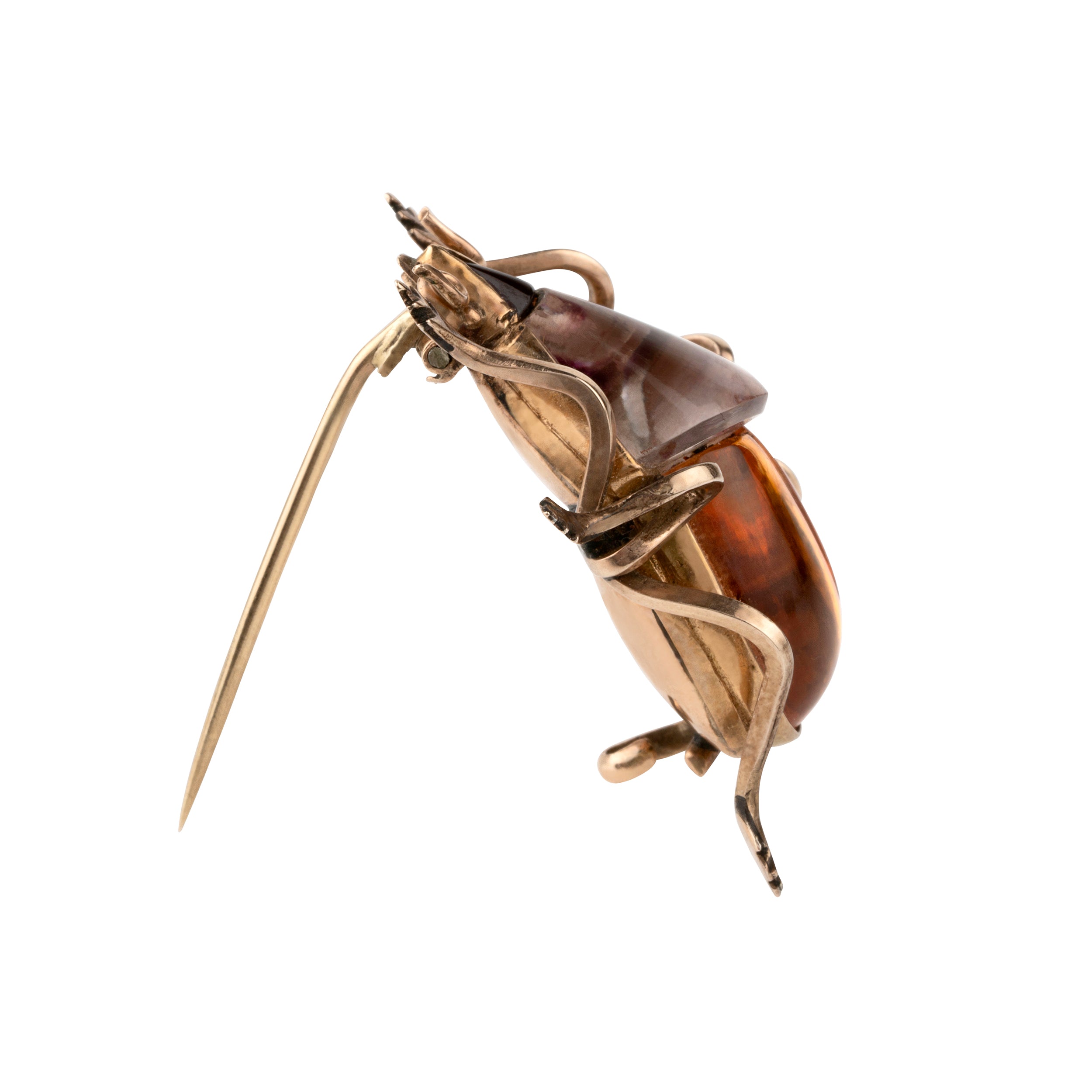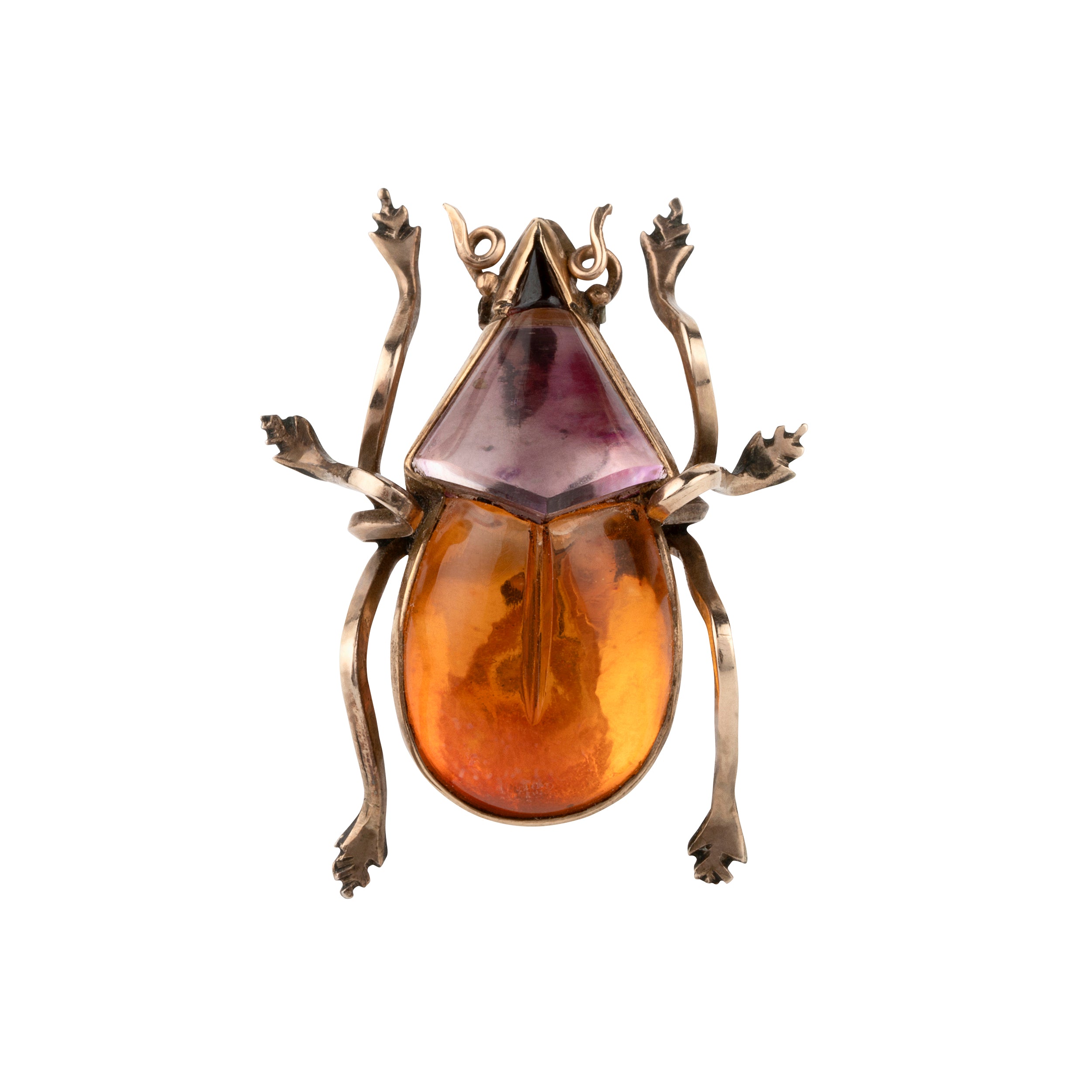 Vibrant creatures in mixed gemstones, rock crystal, amethyst, and garnet. Scaled larger-than-life in gilded brass. Exquisite attention to detail on the legs and antennae.