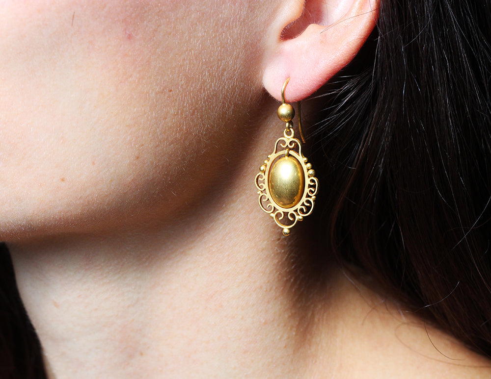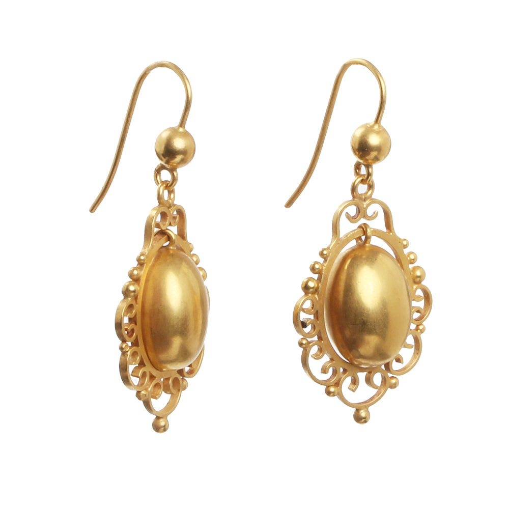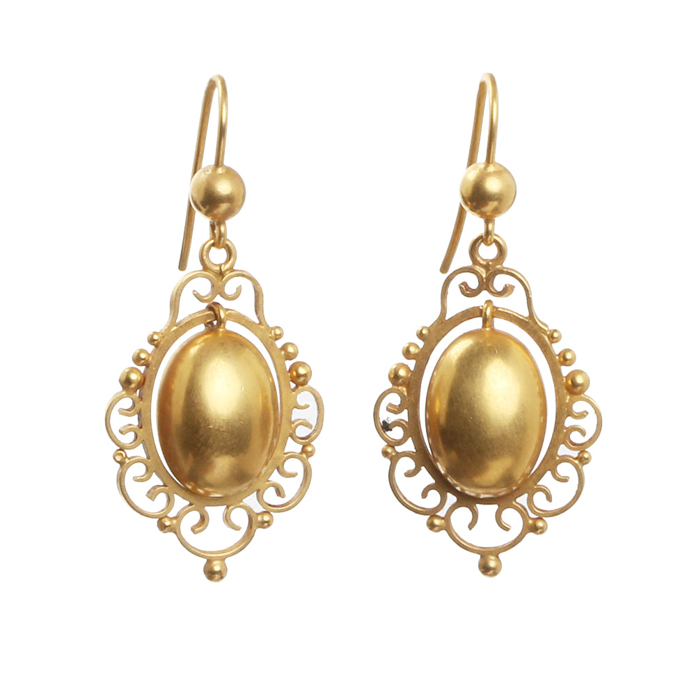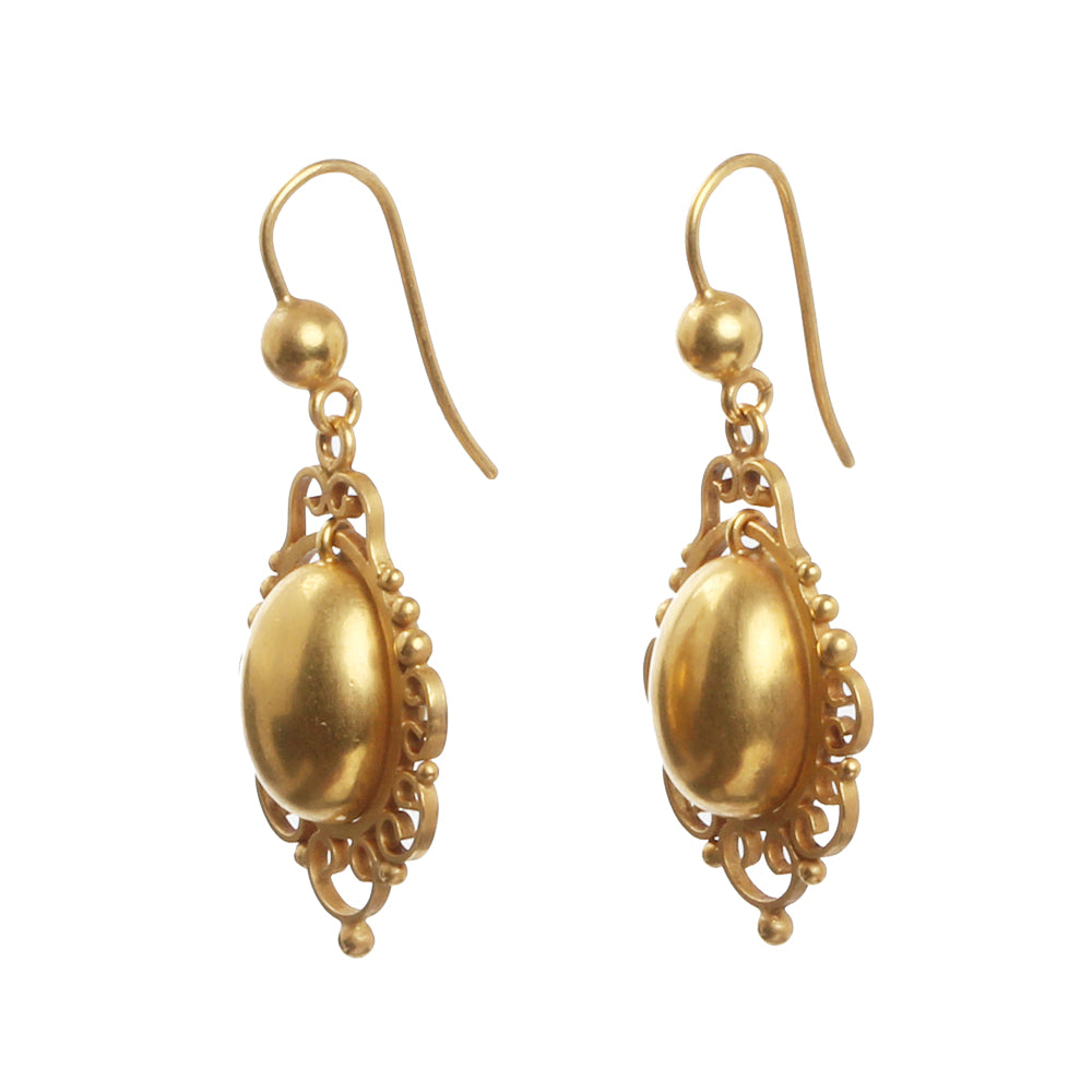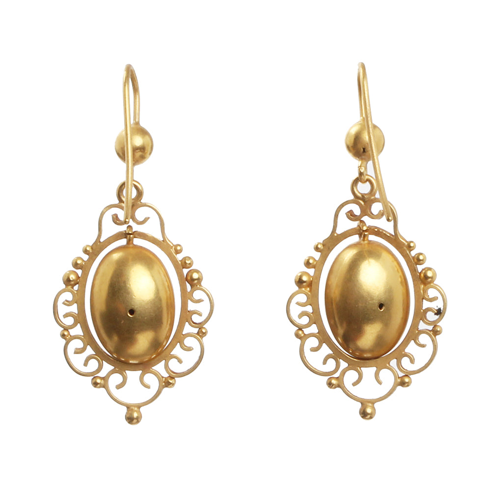 Victorian era gold gilded metal ball drop earrings. Nice little Victorian era earrings. Perfect for every day. English in origin. Circa 1880.