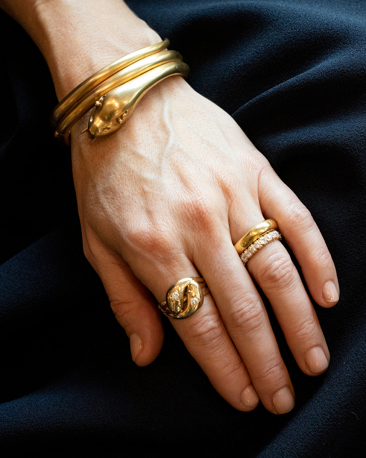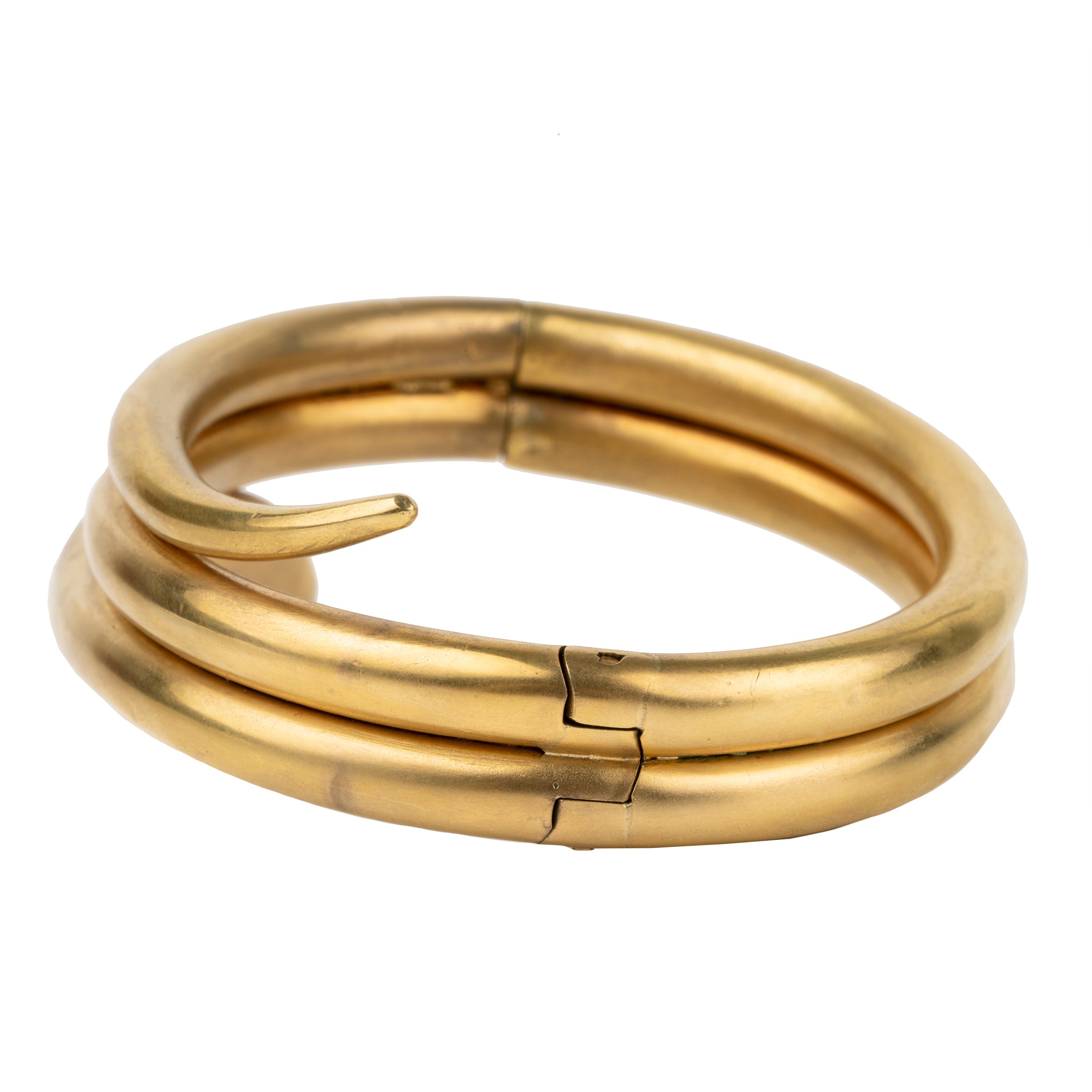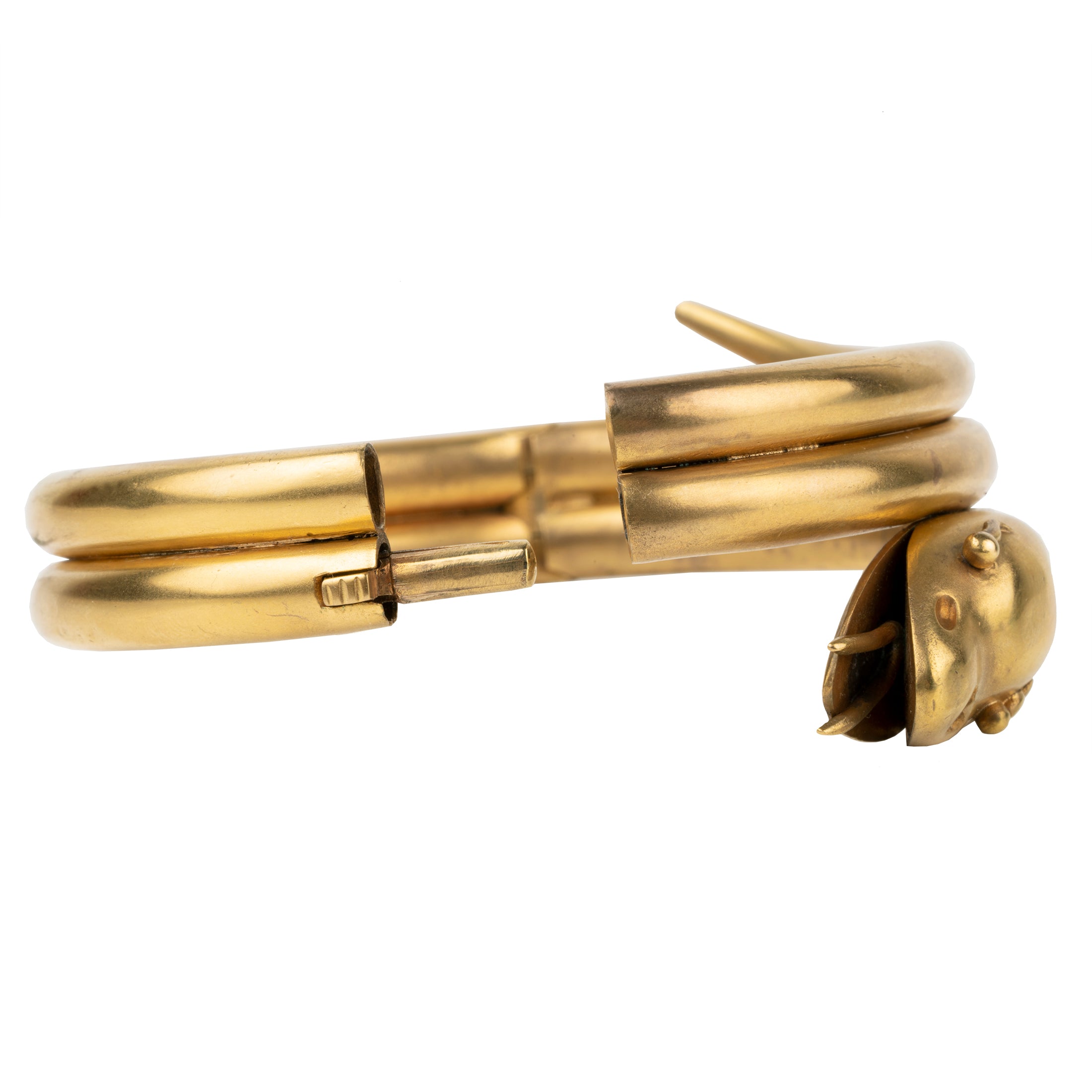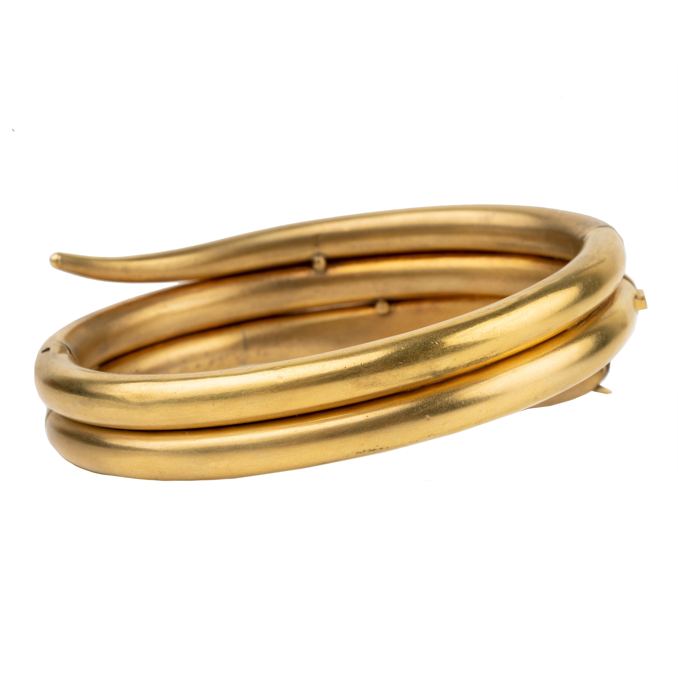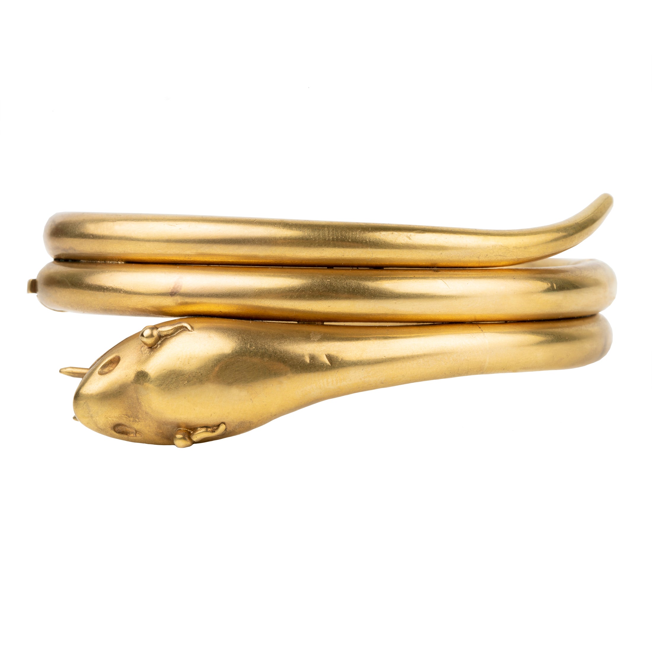 Victorian era gilded metal snake bangle. Wonderful coiled design bracelet, perfect for stacking. English in origin. Circa 1860.