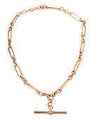 Victorian era 9k rose gold Albert watch chain necklace, with elongated links. Perfect for everyday wear or layering. Lightweight, made with hollow links that are individually hallmarked for 9k. English in origin. Circa 1890.