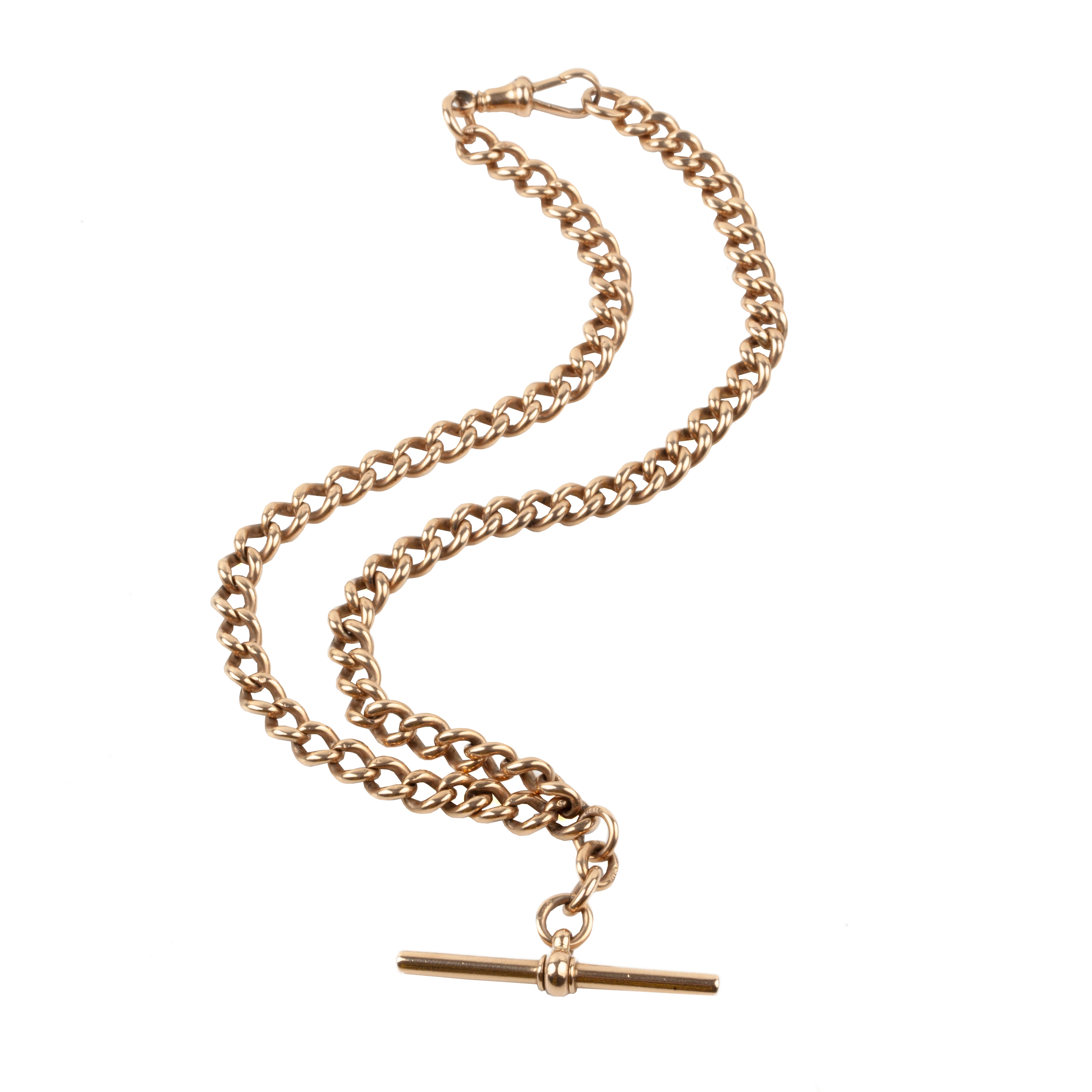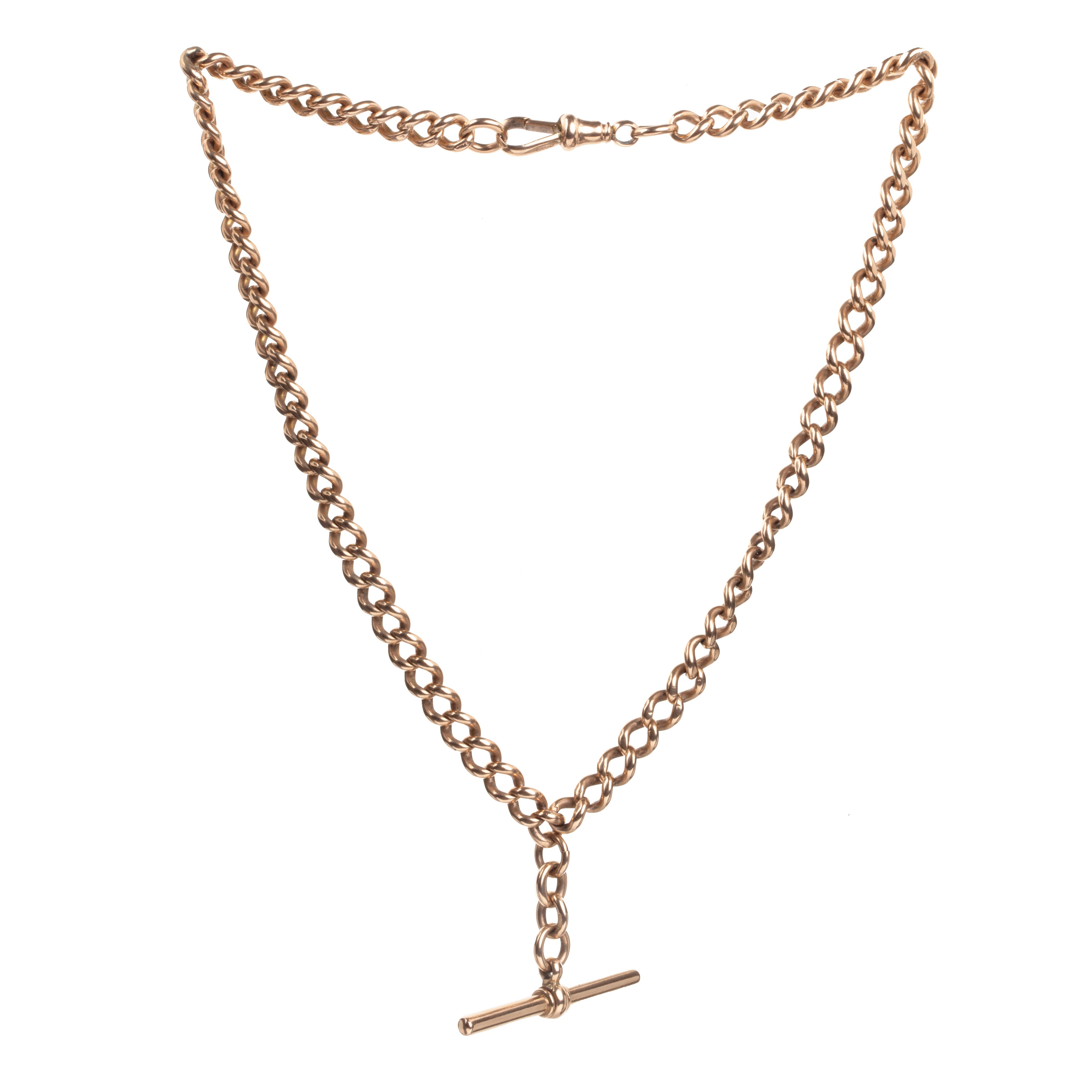 Victorian era 9k rose gold Albert watch chain necklace, with curb links. Perfect for everyday wear. Nice heavy polished links with a watch toggle. English in origin. Circa 1880.