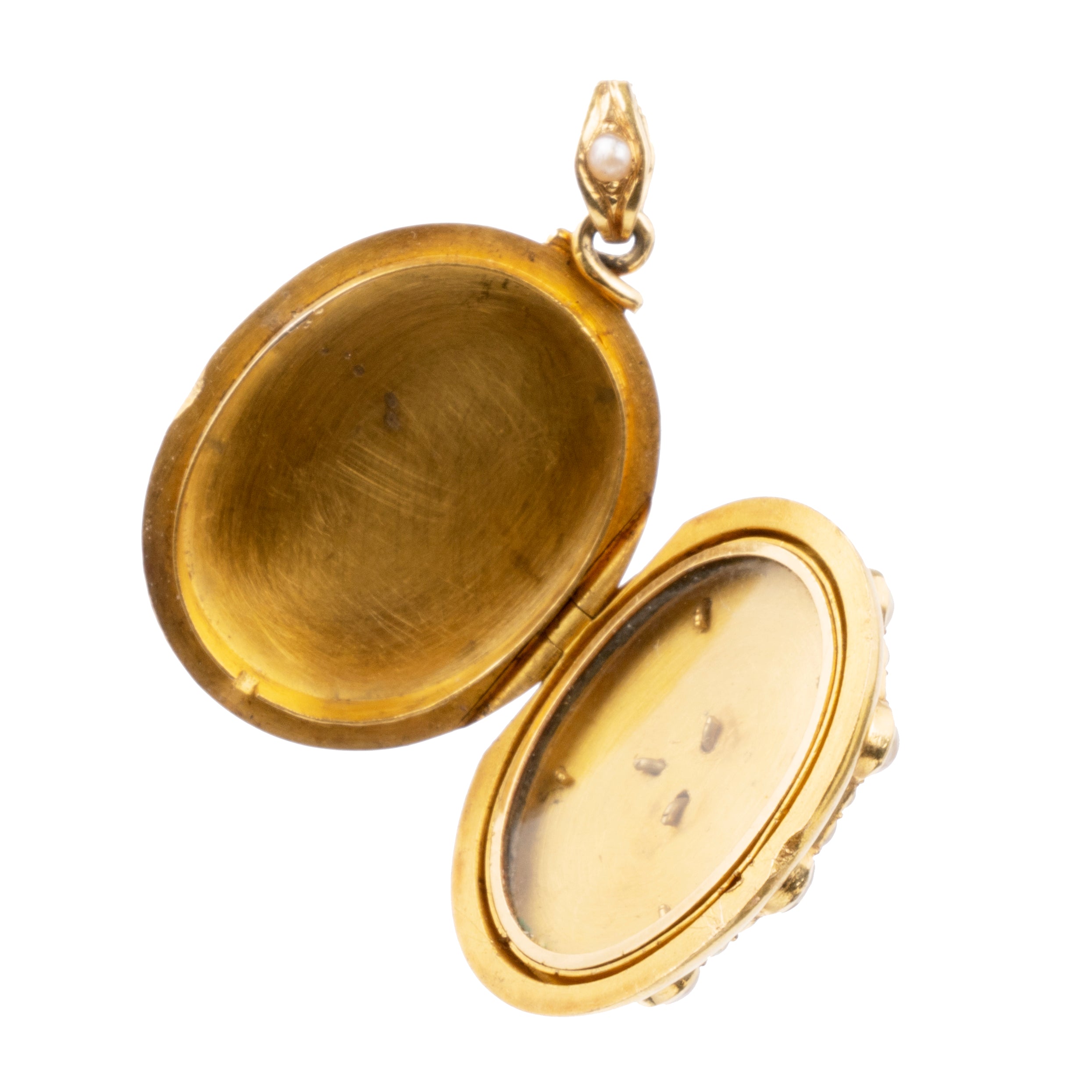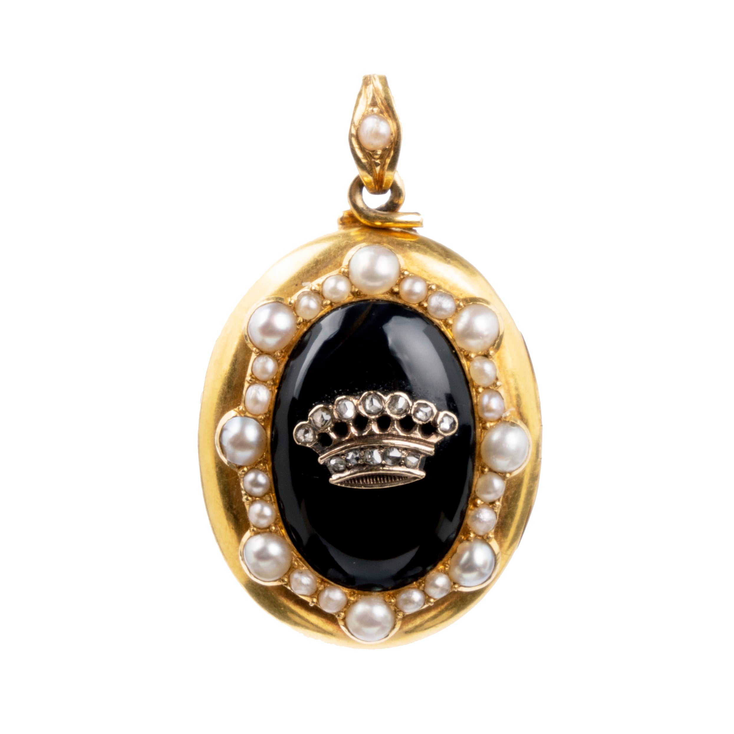 Victorian Era Gold Enamel, Diamond, and Pearl Crown Locket