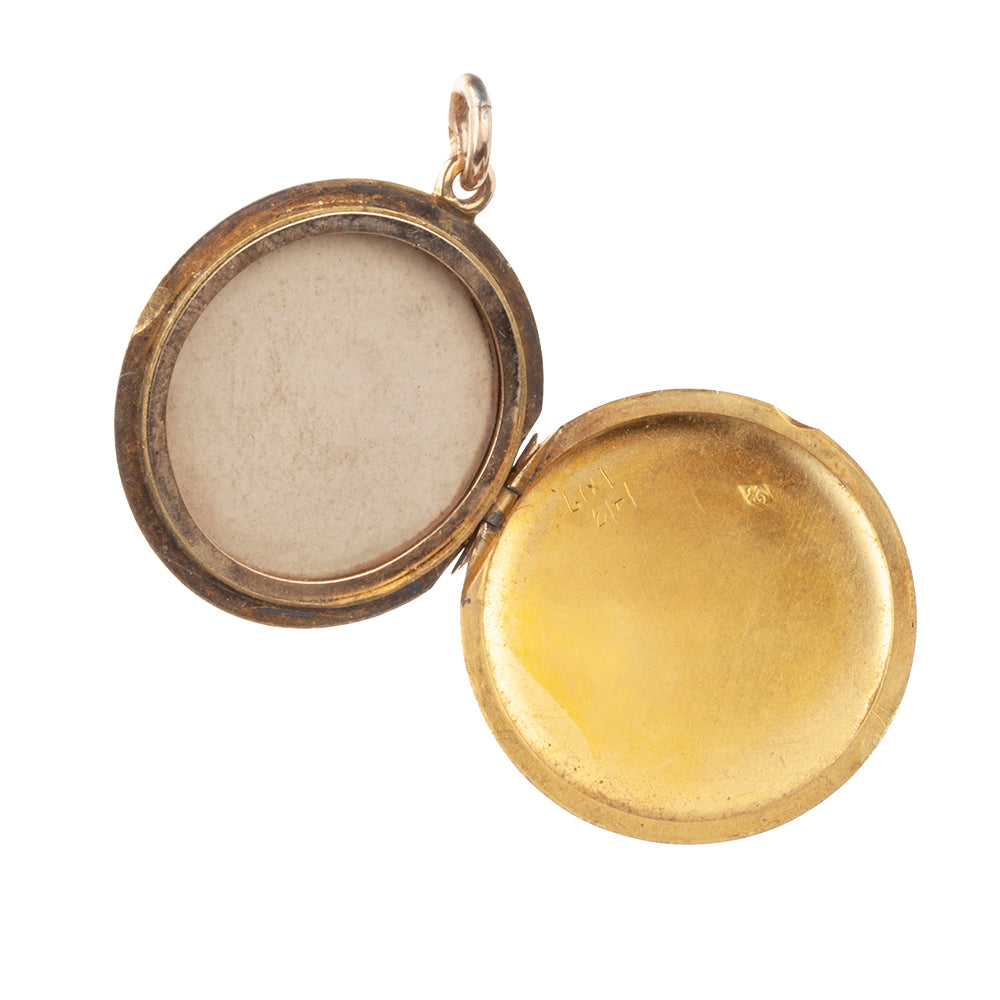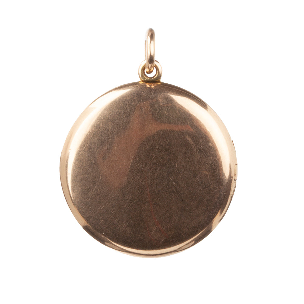 Victorian era plain round locket locket, in 15kt gold. English in origin. Circa 1900.