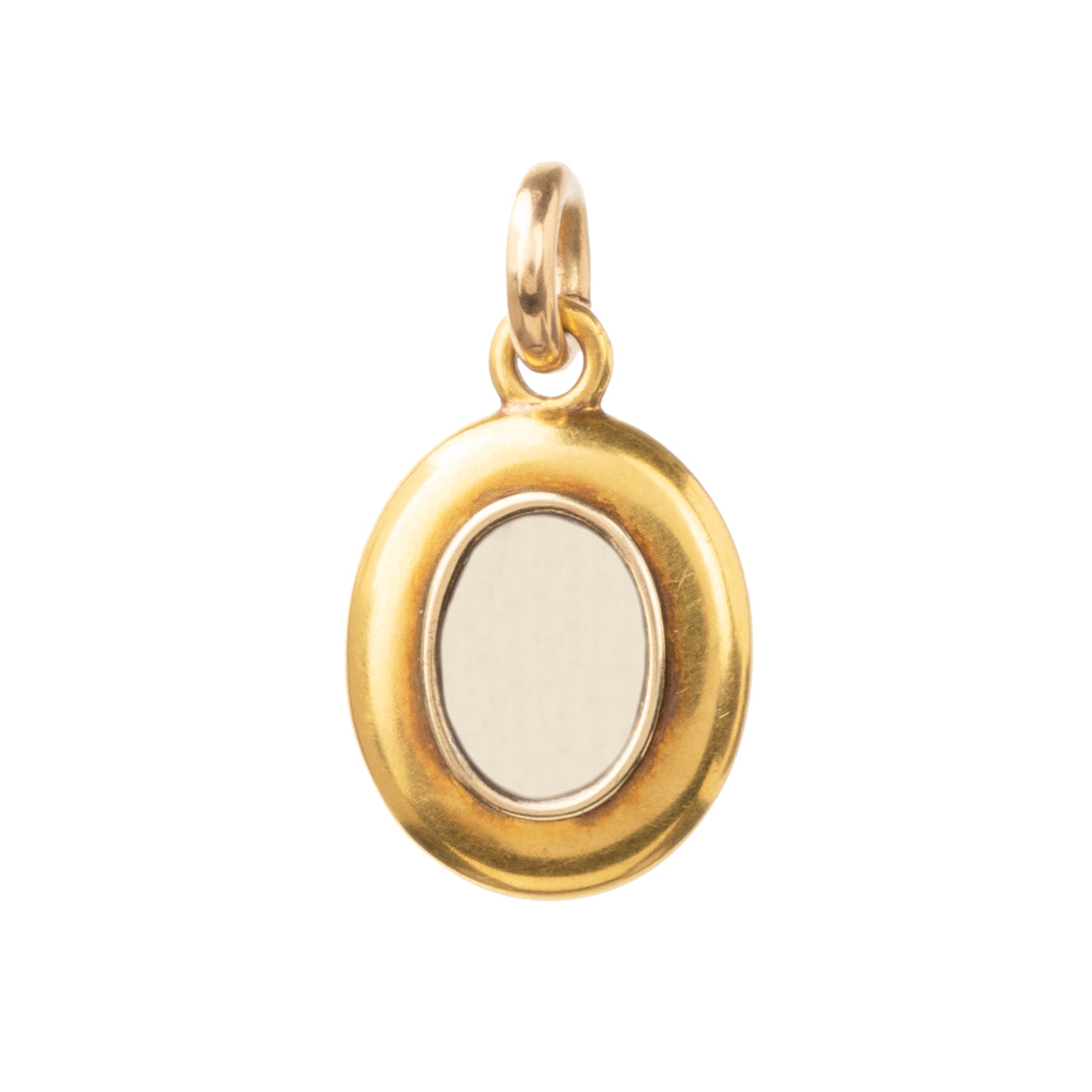 Measures 1" in drop length and .50" wide. Antique and modern gold chains are sold separately and are available in-store. Please call or email the shop to inquire.