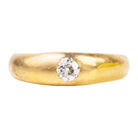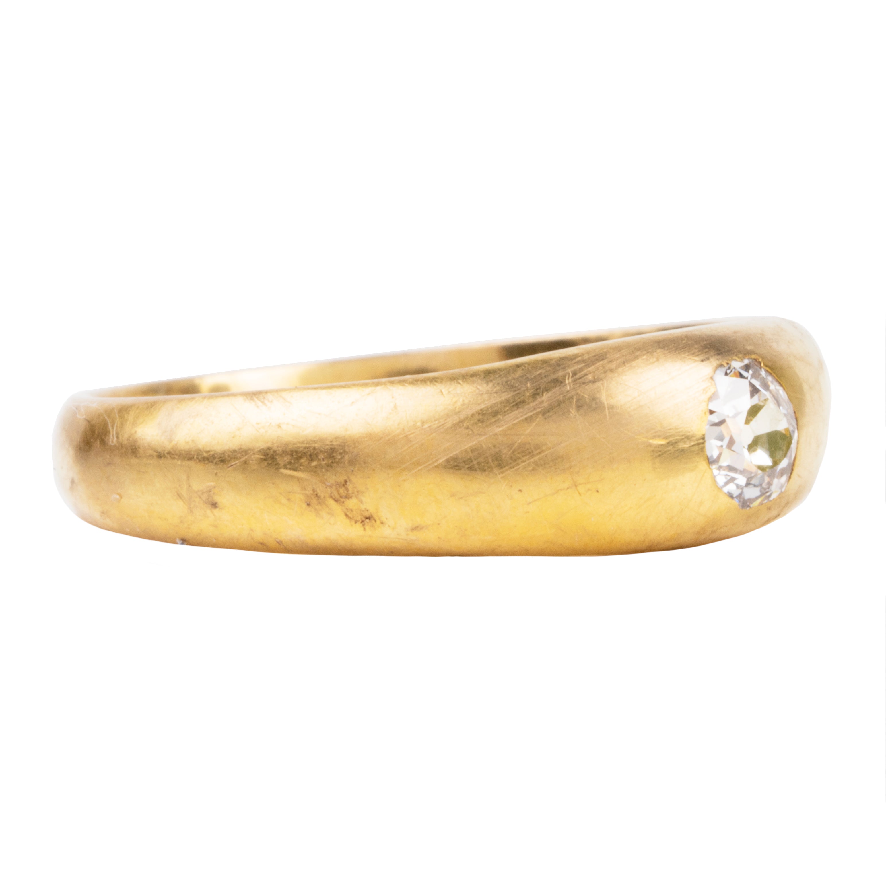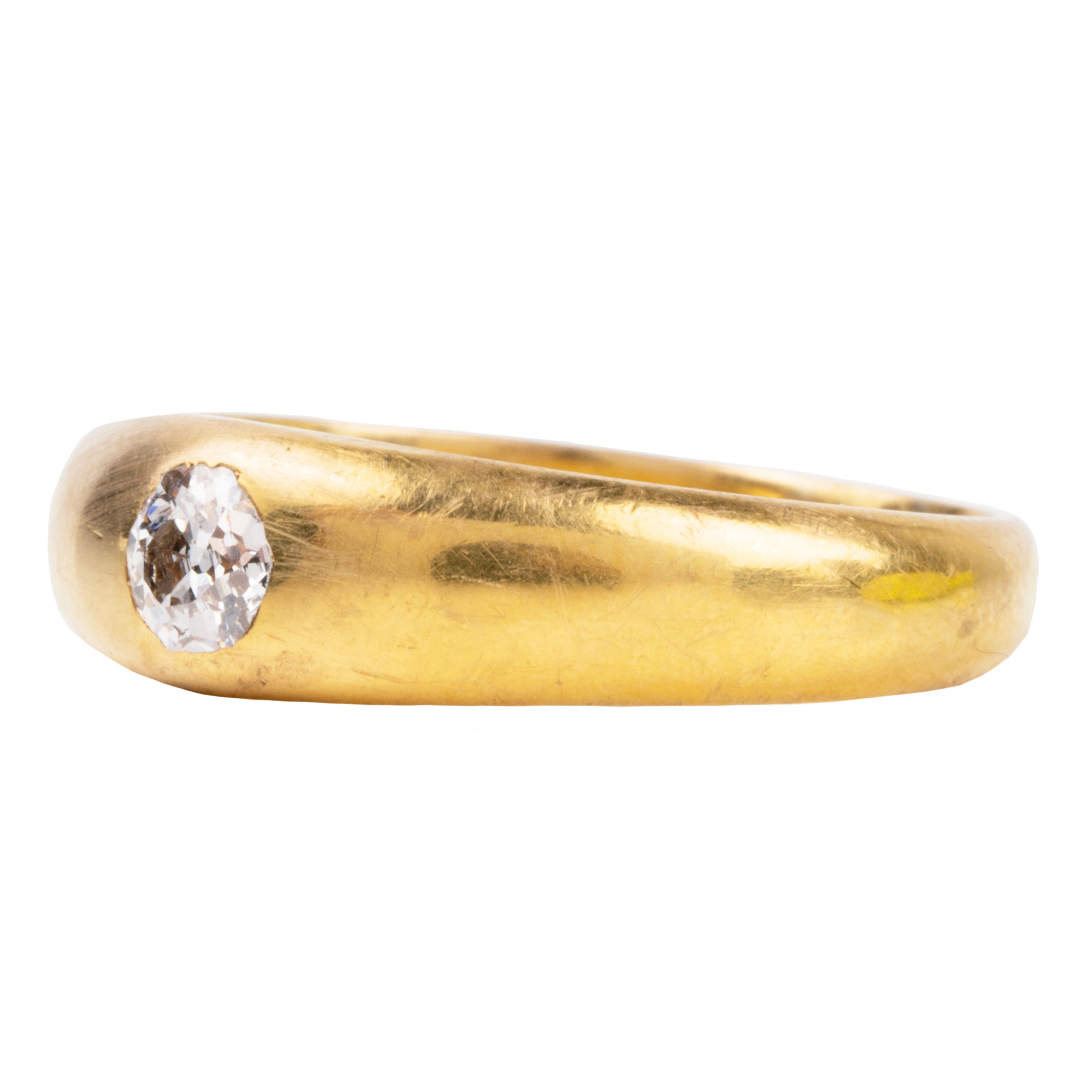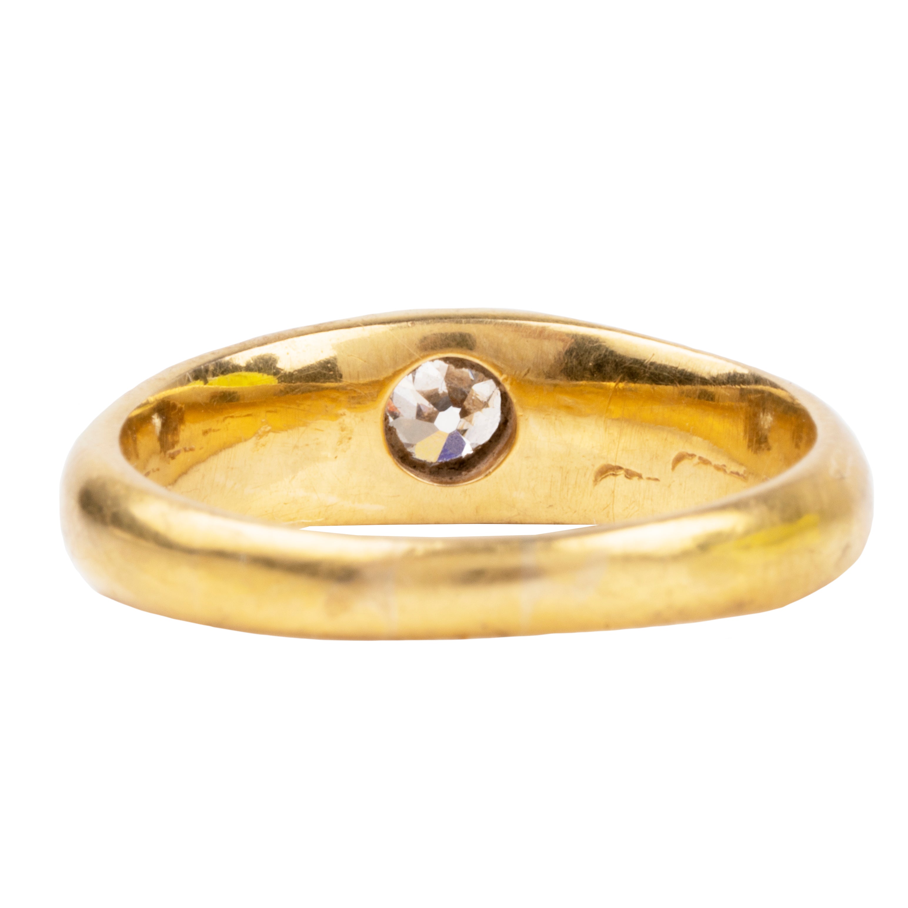 Victorian era old mine cut diamond ring, in 18k gold. Flush set old mine cut diamond. English in origin. Circa 1890.