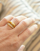 The ring is paired with a Victorian five stone diamond ring in the photo.