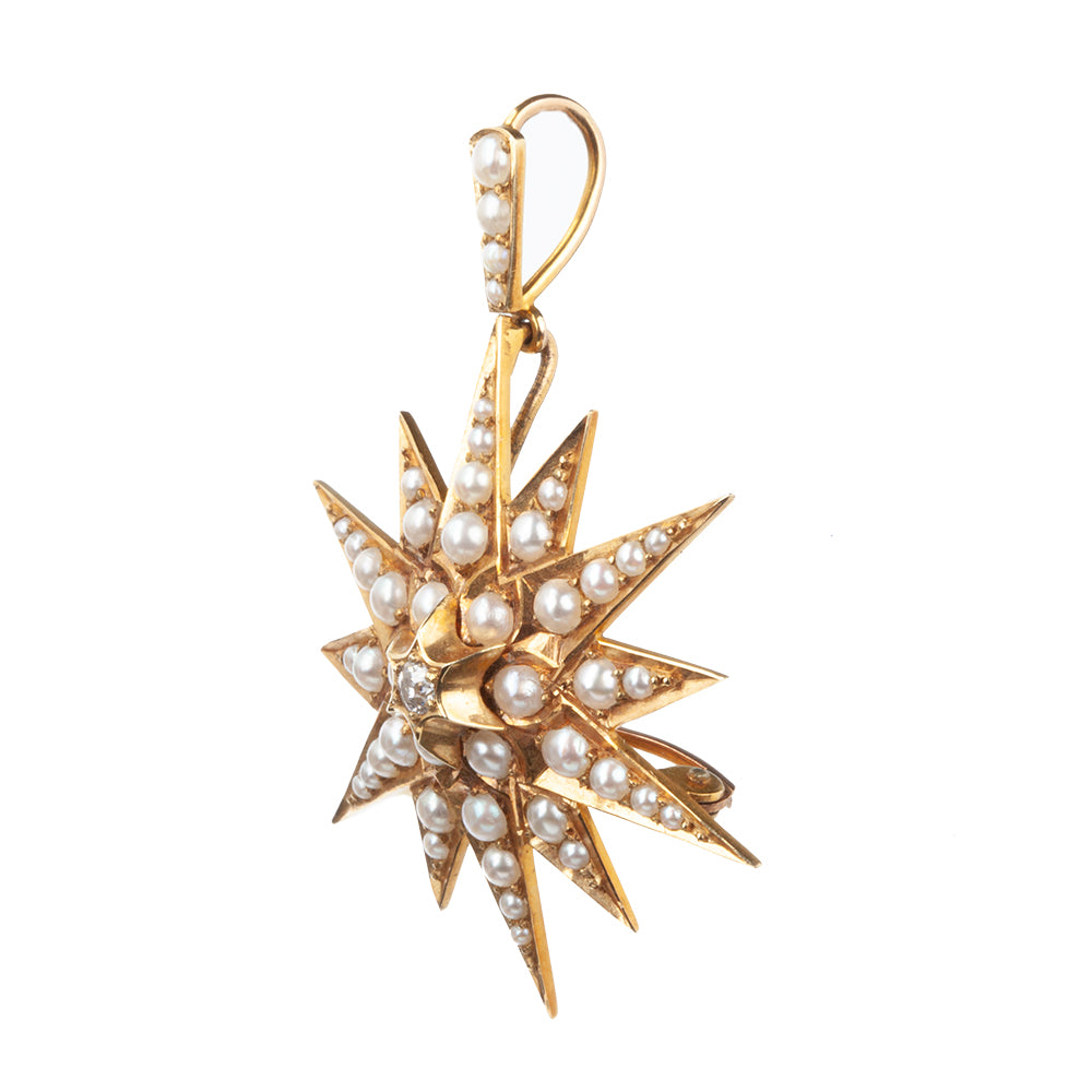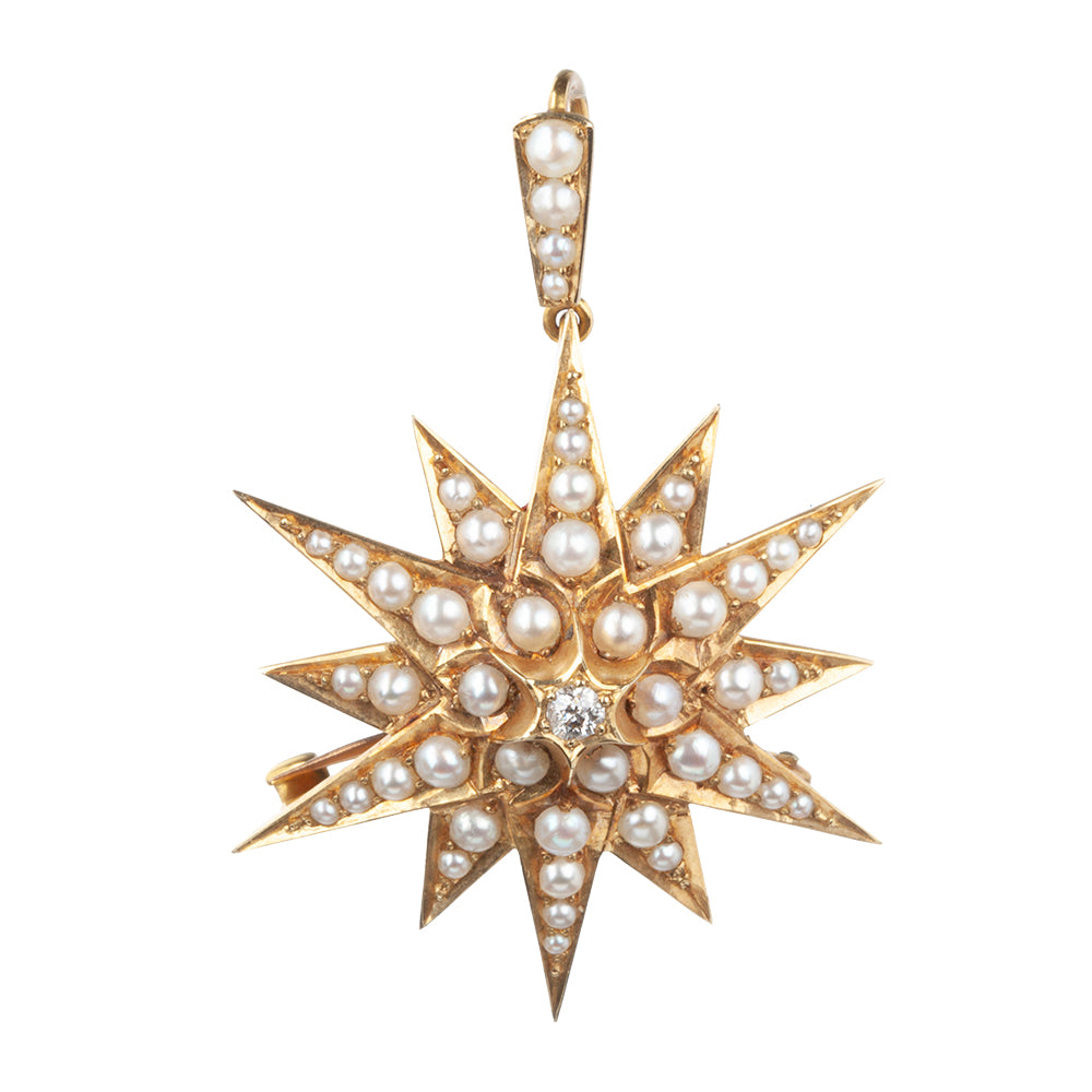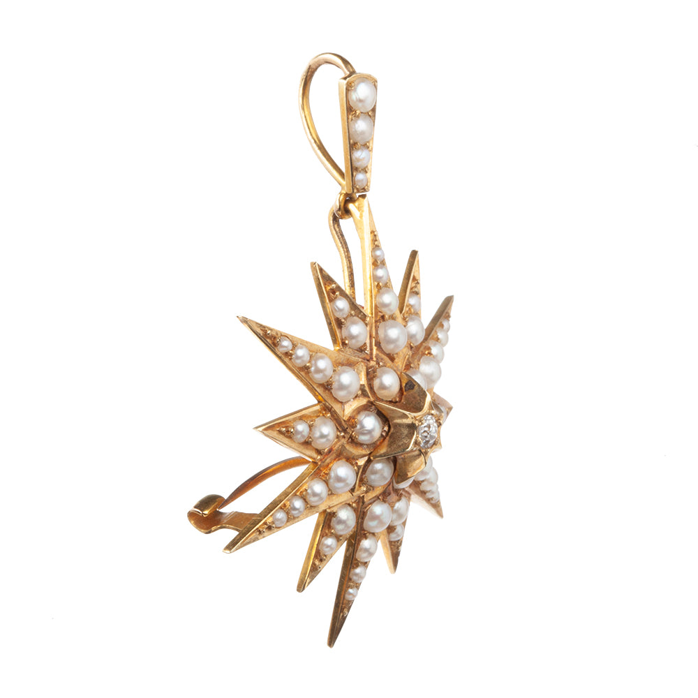 Victorian Era Pearl and Diamond Star Burst Pendant