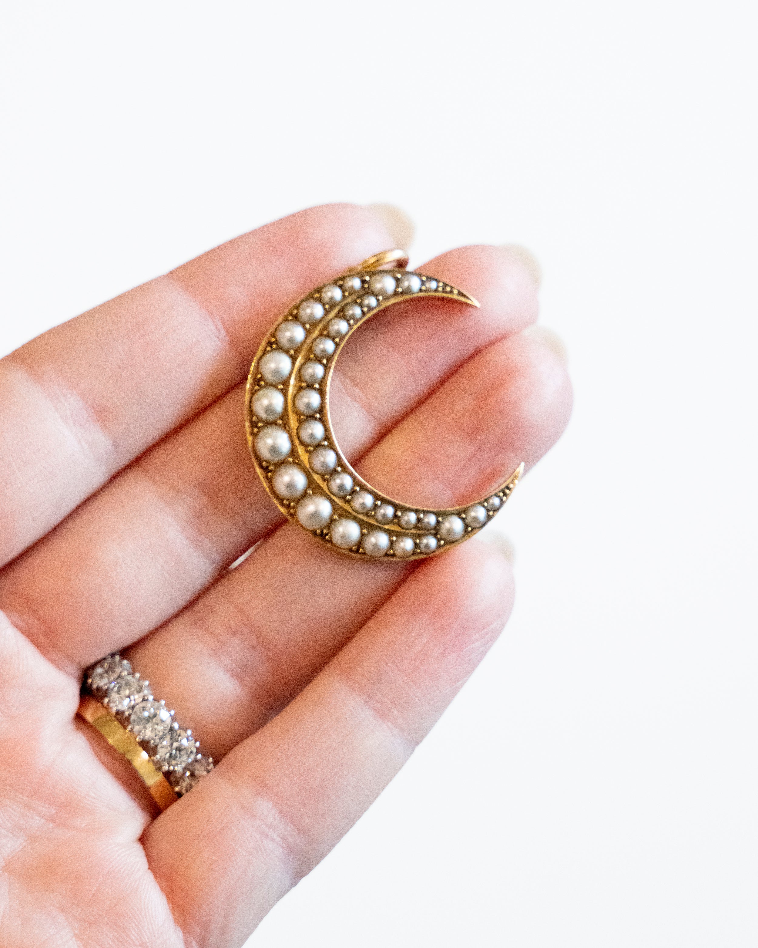 Victorian era Pearl Crescent Moon Pendant