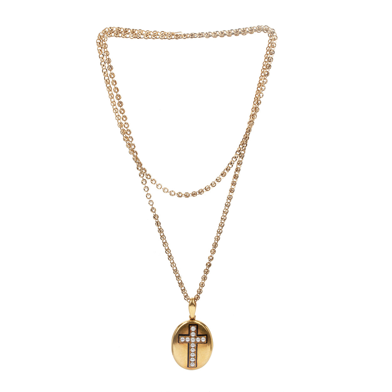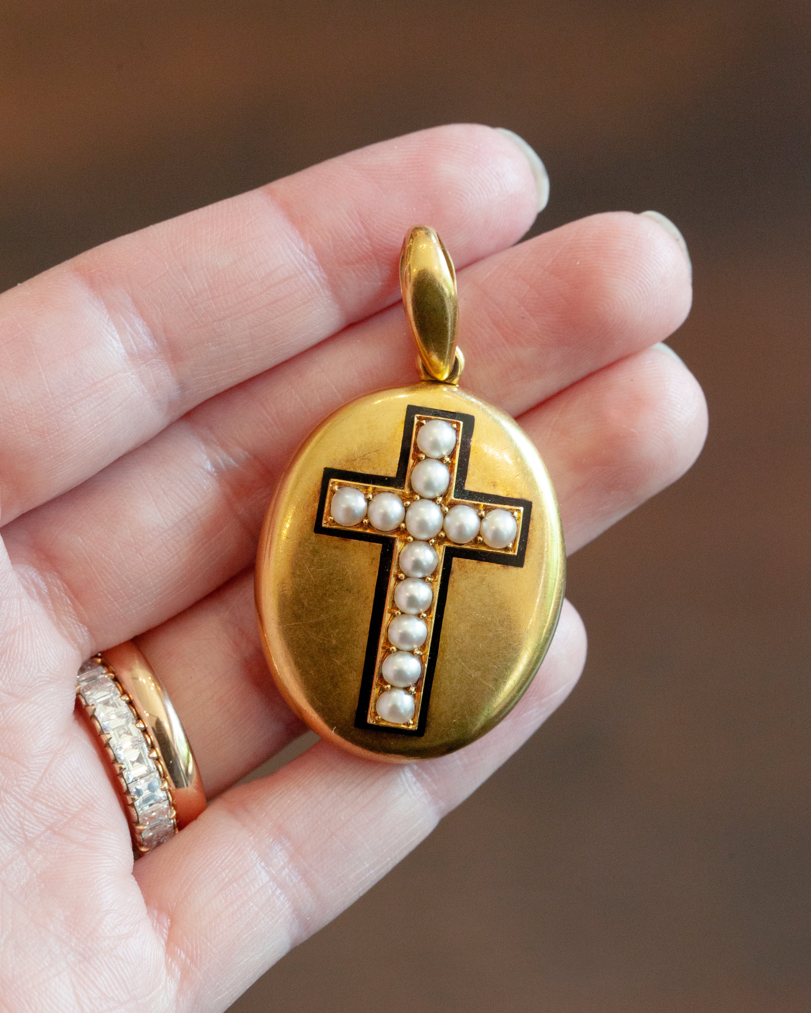 Victorian era pearl cross locket