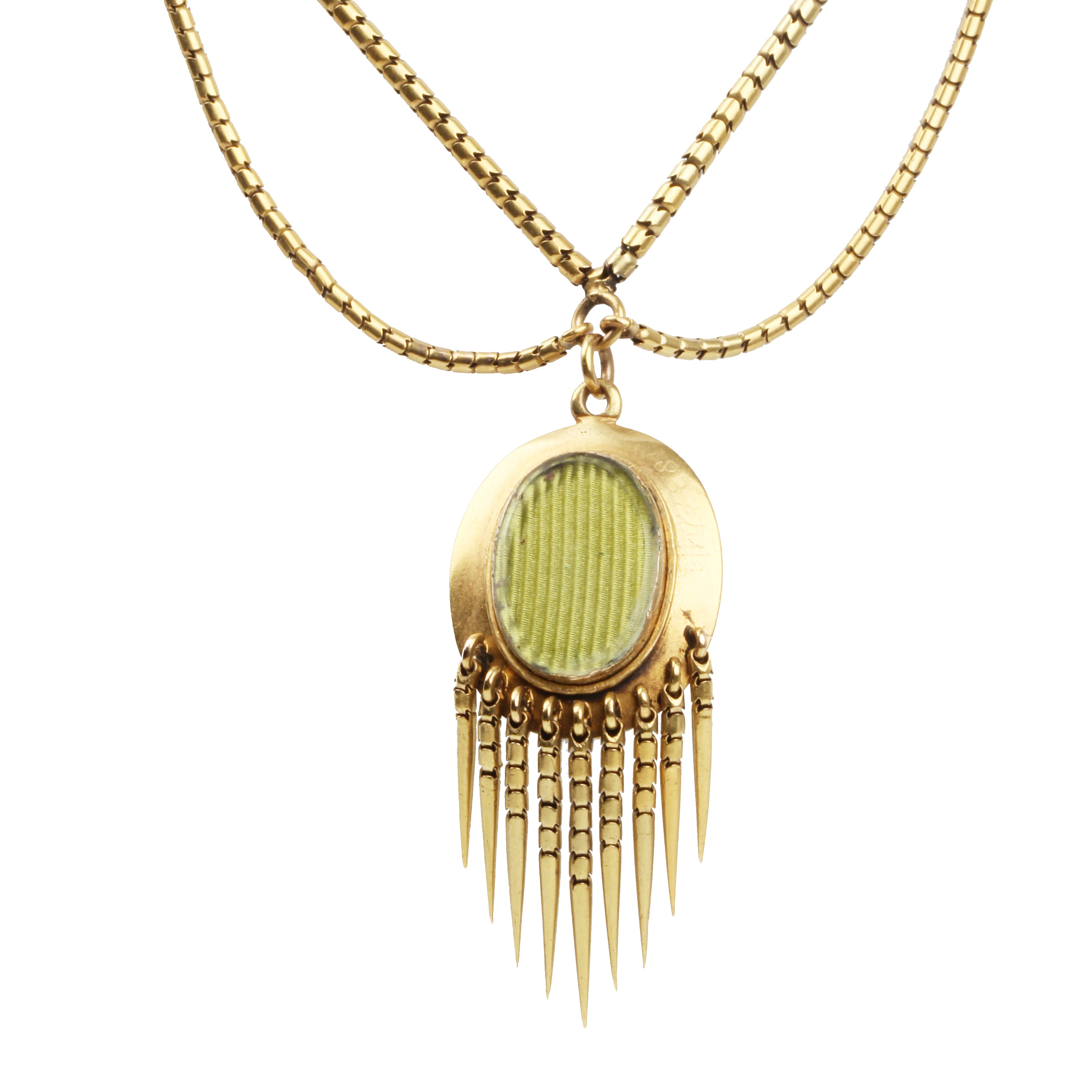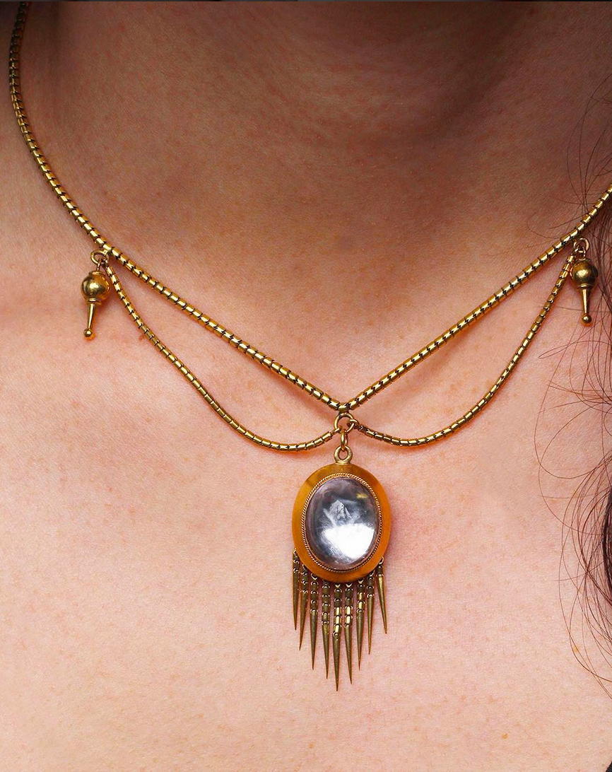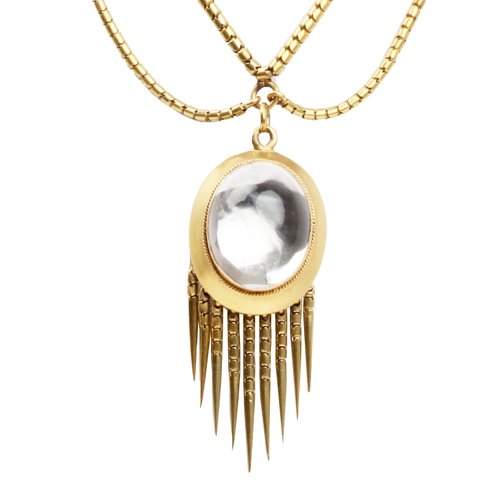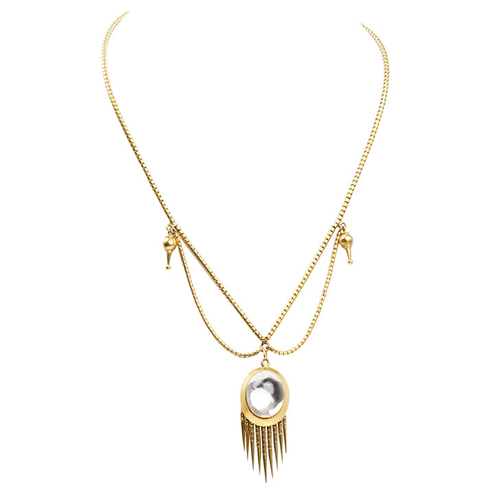 Victorian Era Gold Necklace with Rock Crystal Fringe Locket