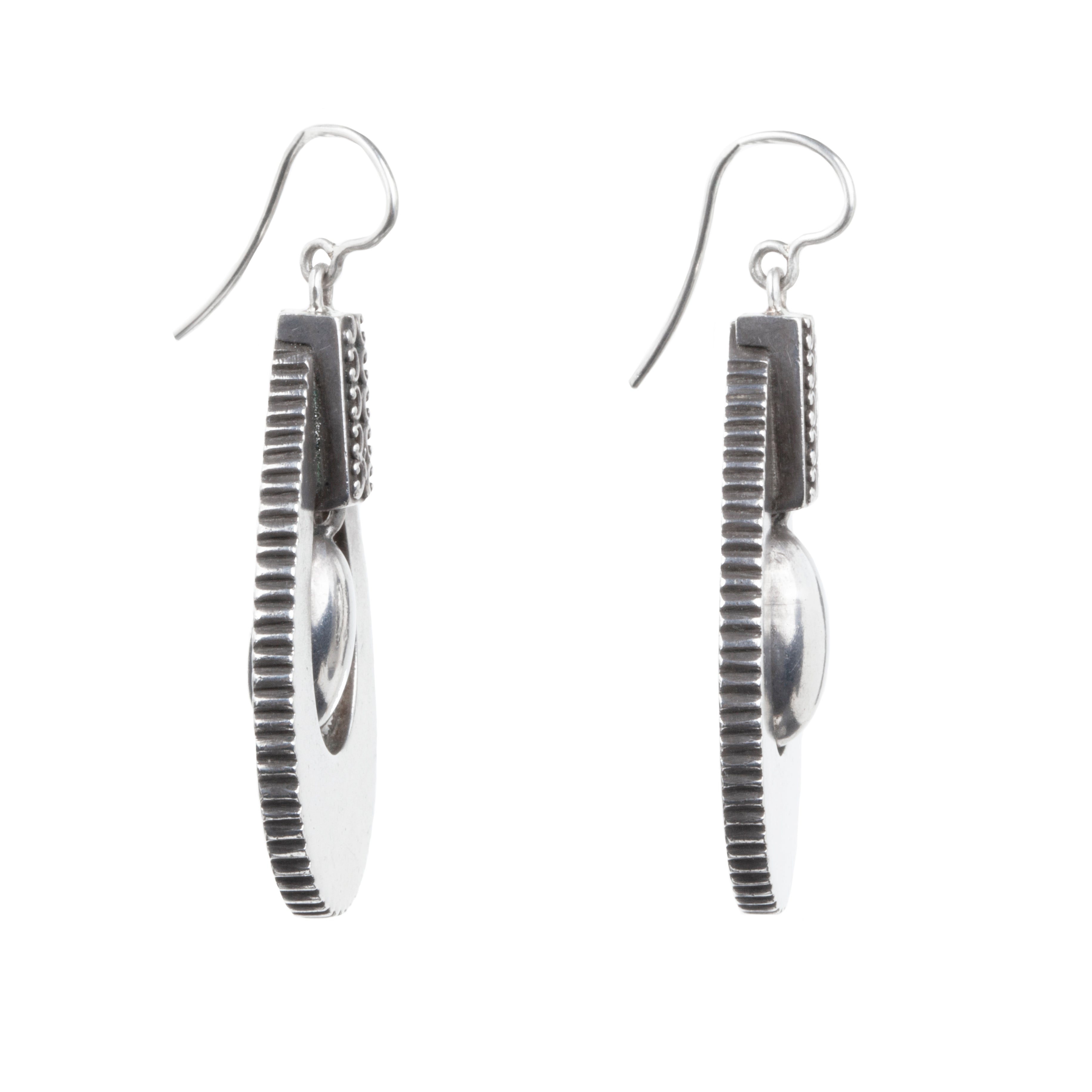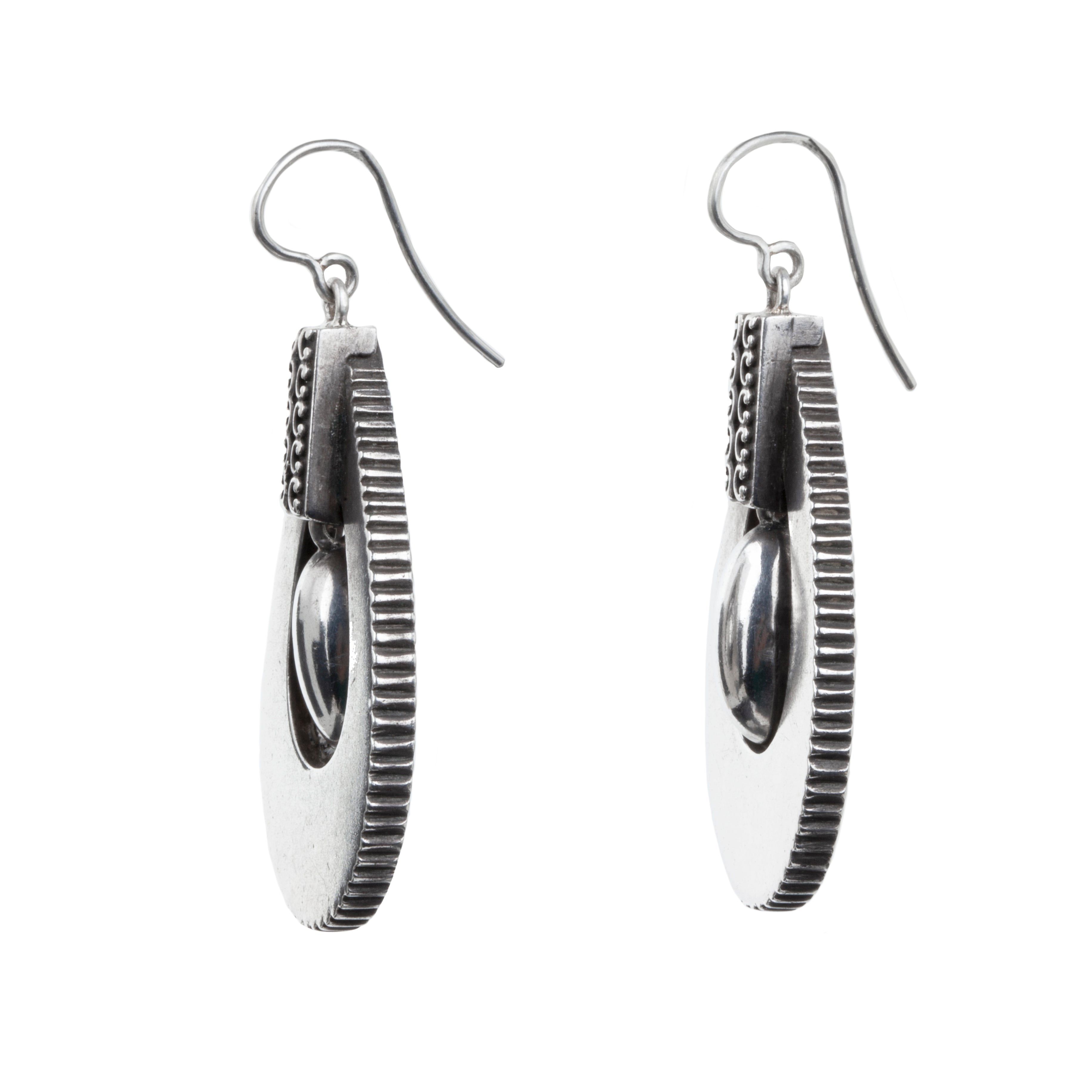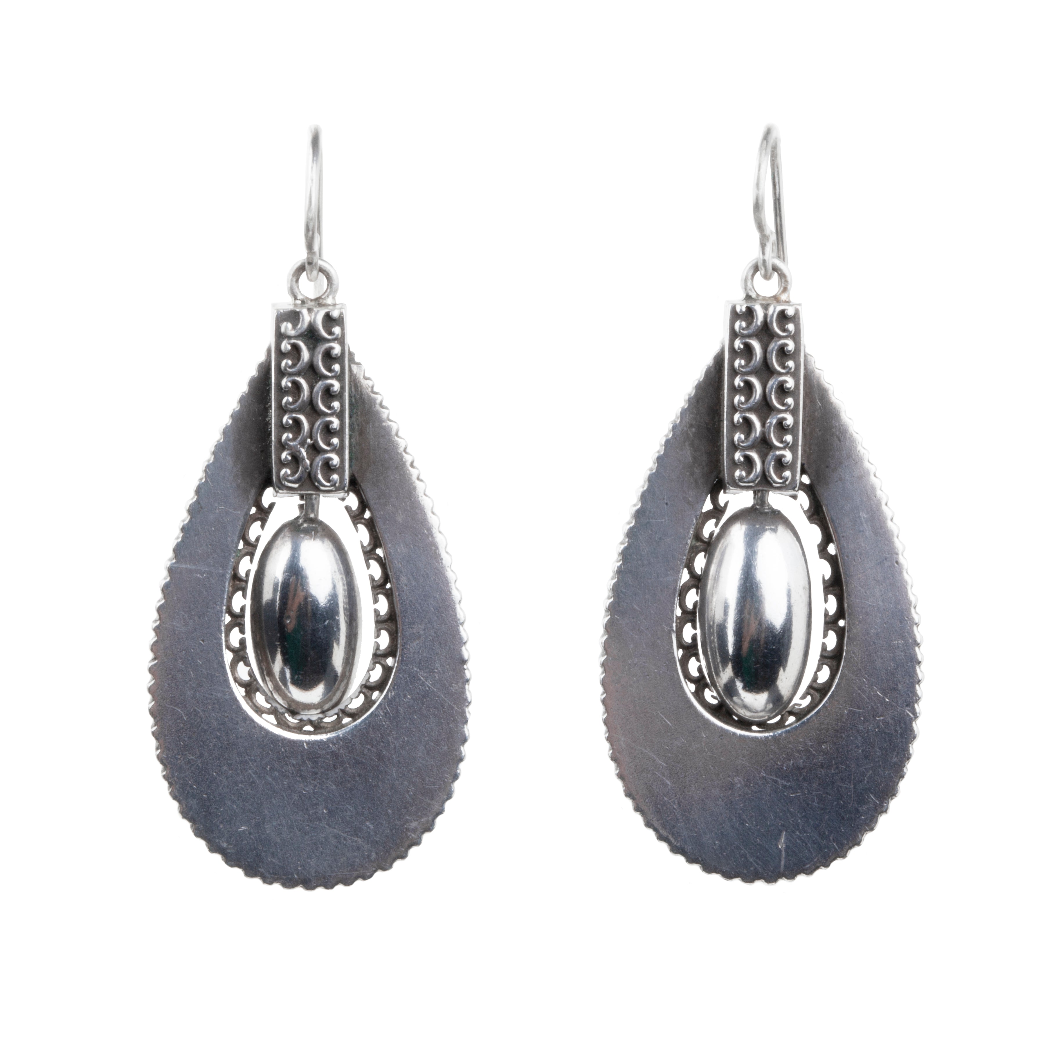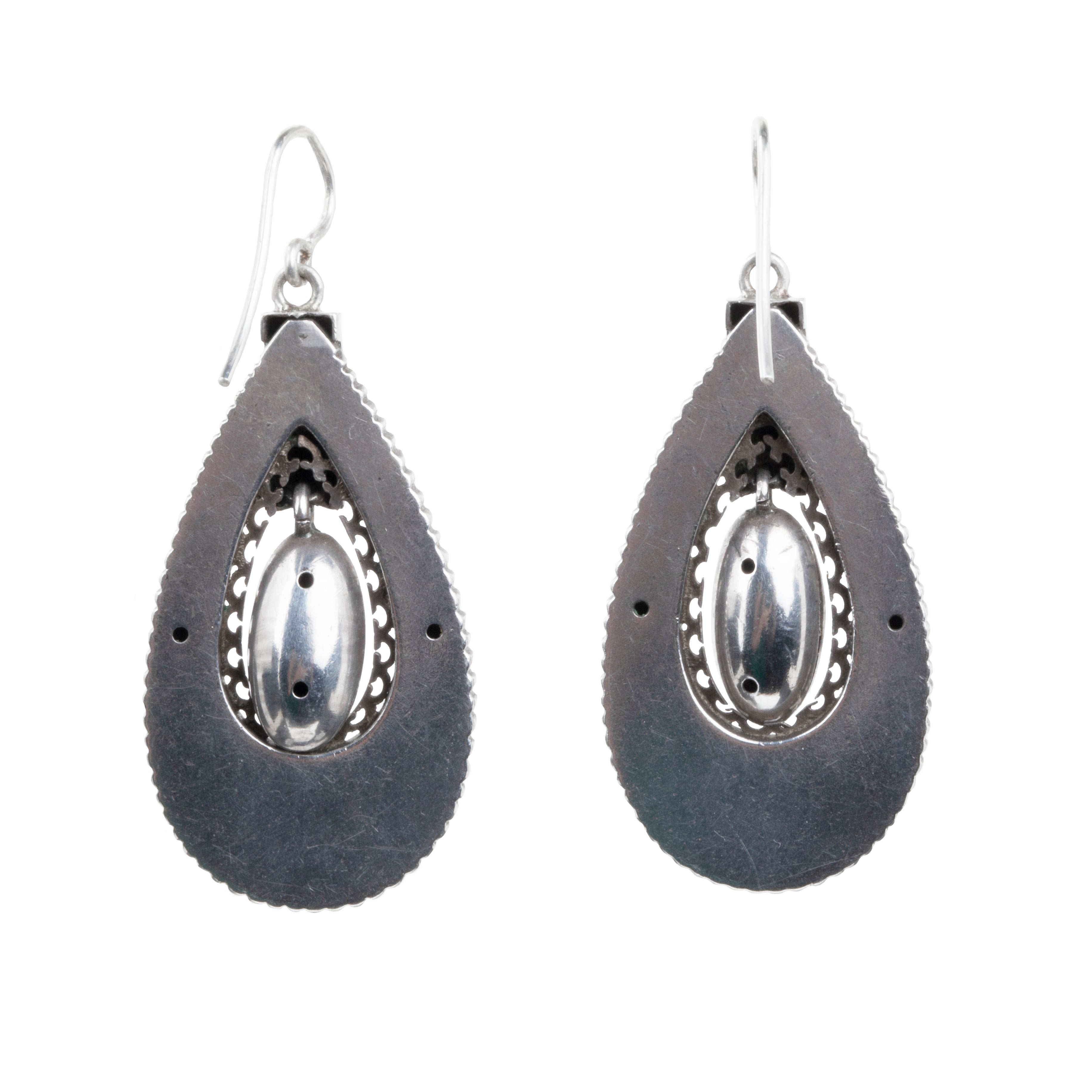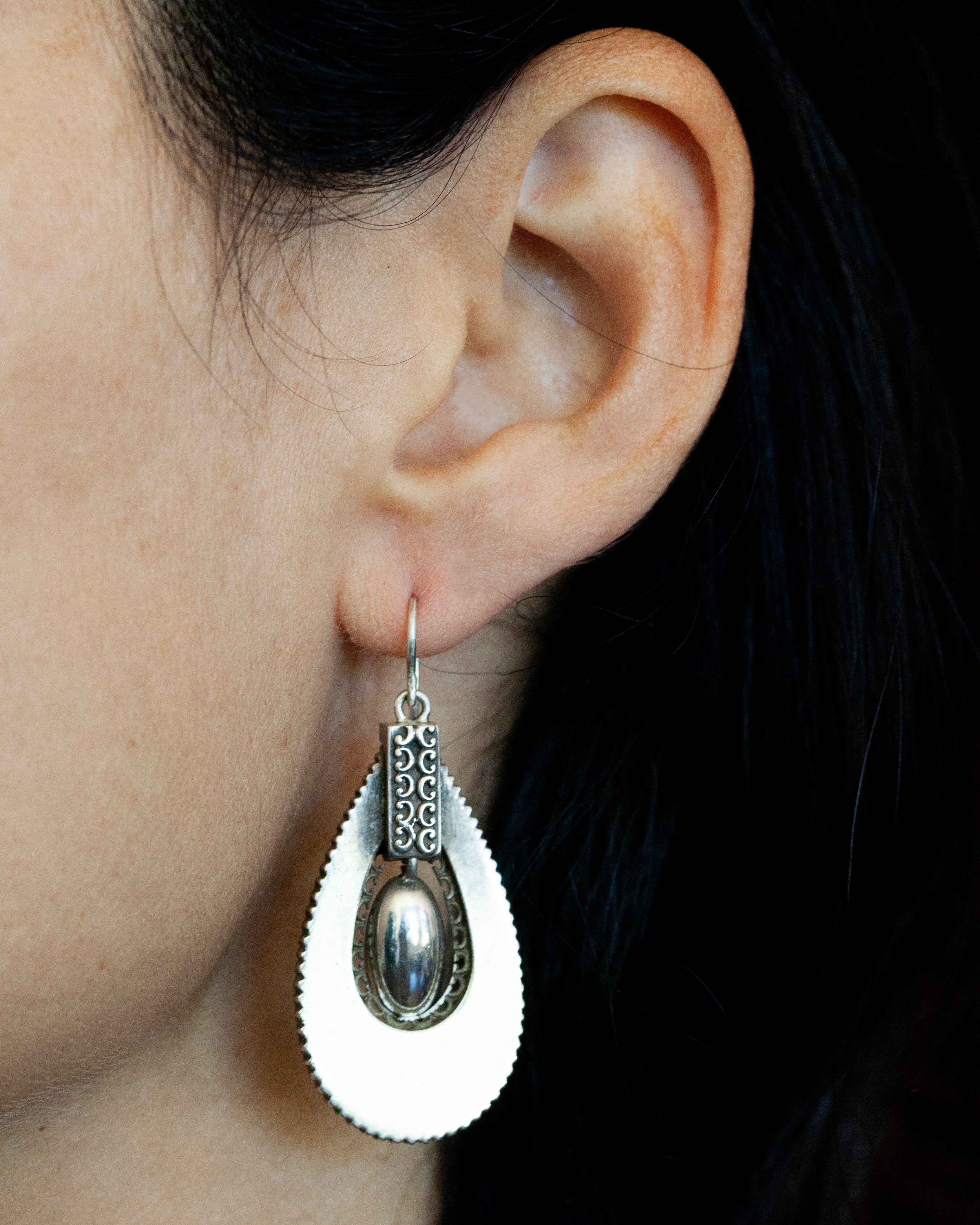Victorian era silver earrings with pendulum drops. Light in weight and very wearable. English in origin. Circa 1870.