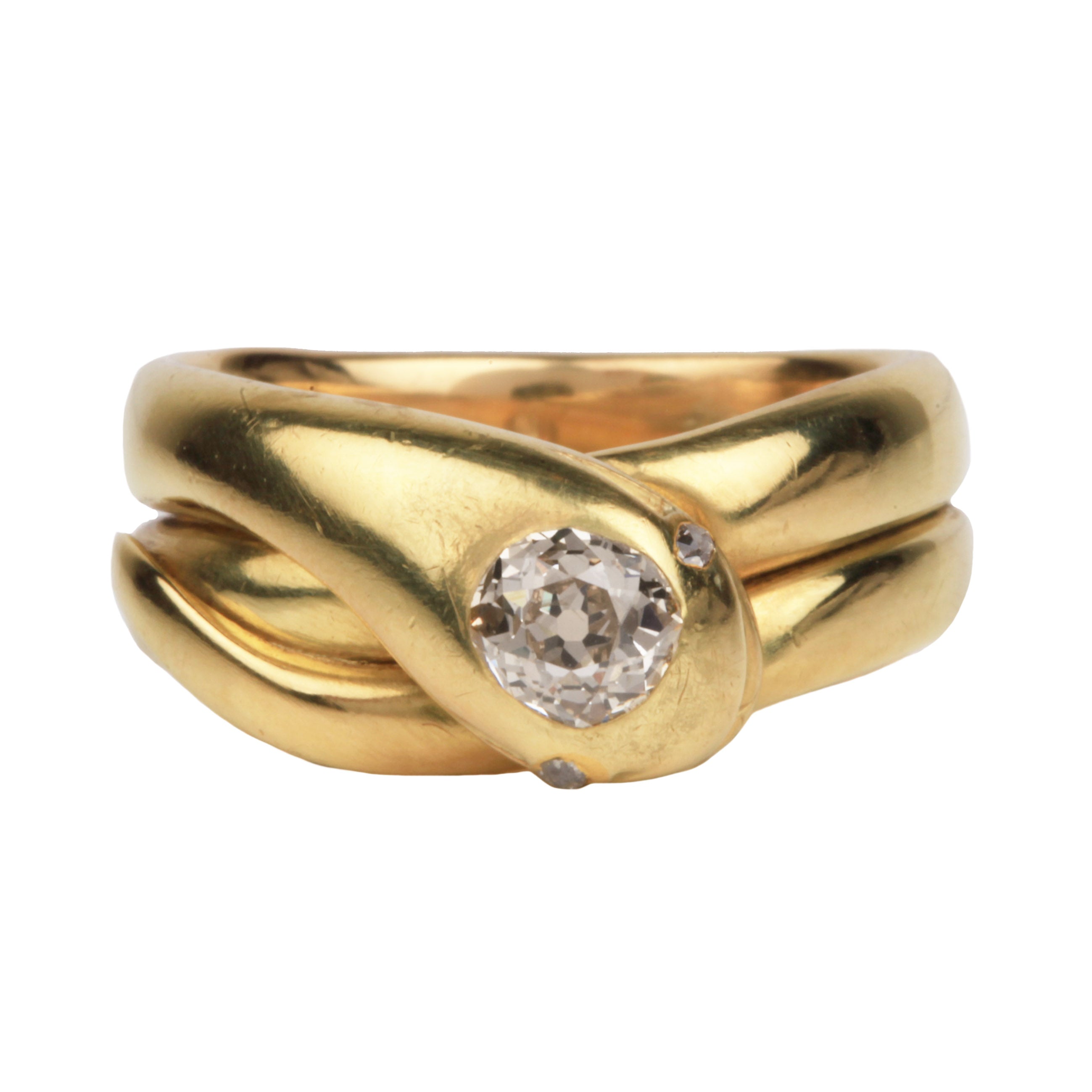 The serpent wound its way through the 19th century jewelry as an amulet, a talisman, as a good luck charm and symbol of enduring love.