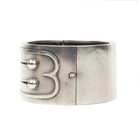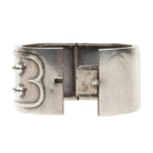 Victorian era sterling bangle with double button cuff detail on plain bangle. English in Origin, Circa 1880