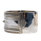 Great wide size for stacking or worn as an everyday bracelet. Hidden push clasp. Approximate 6.50" inner circumference and 1.25" in width.