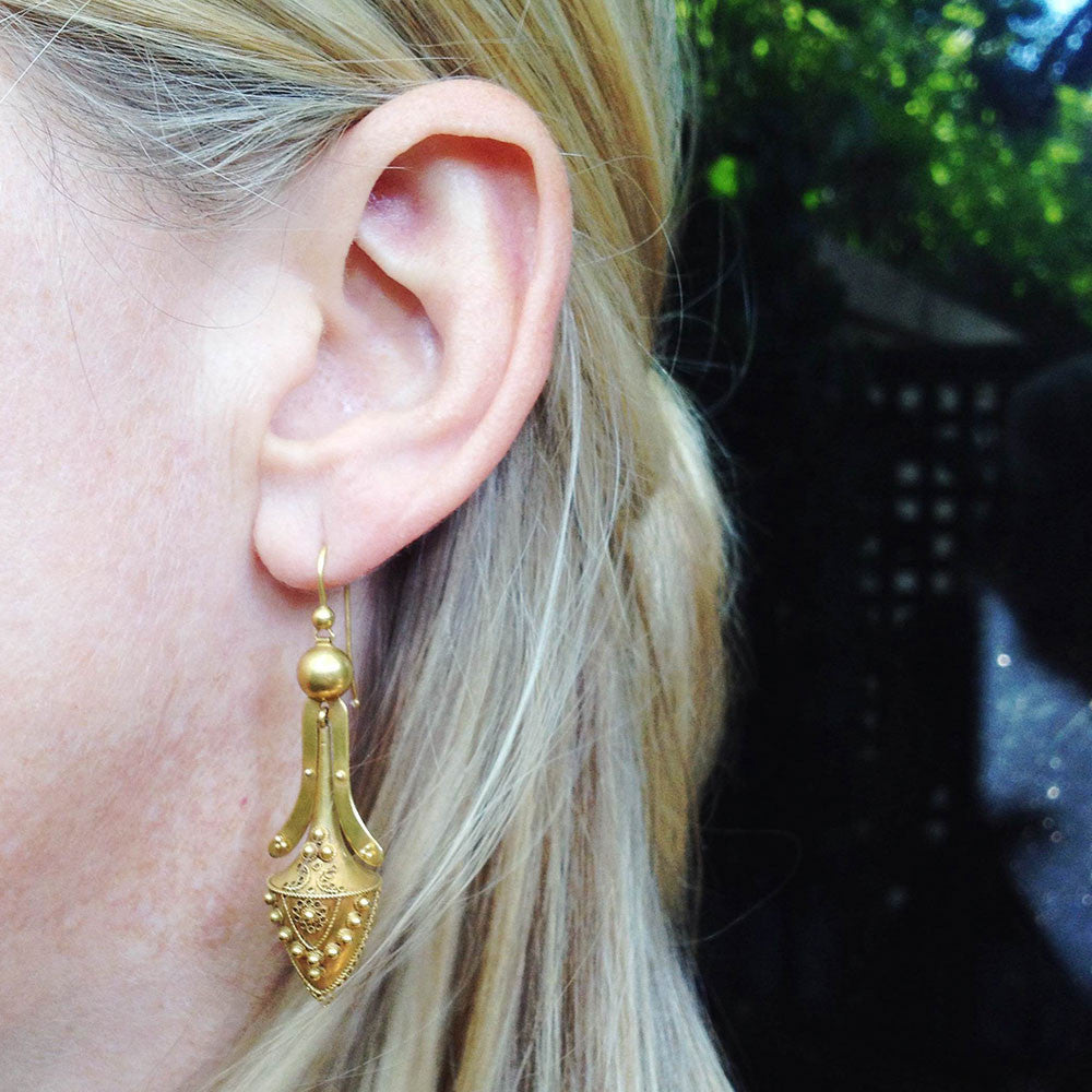 Victorian Era Etruscan Revival Gold Urn Earrings