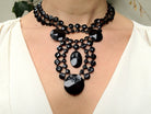 Early Victorian French Jet necklace. True 19th century french jet glass mounted on black enameled metal. See our Field Guide to learn more of the 19th Century fashion for black.
