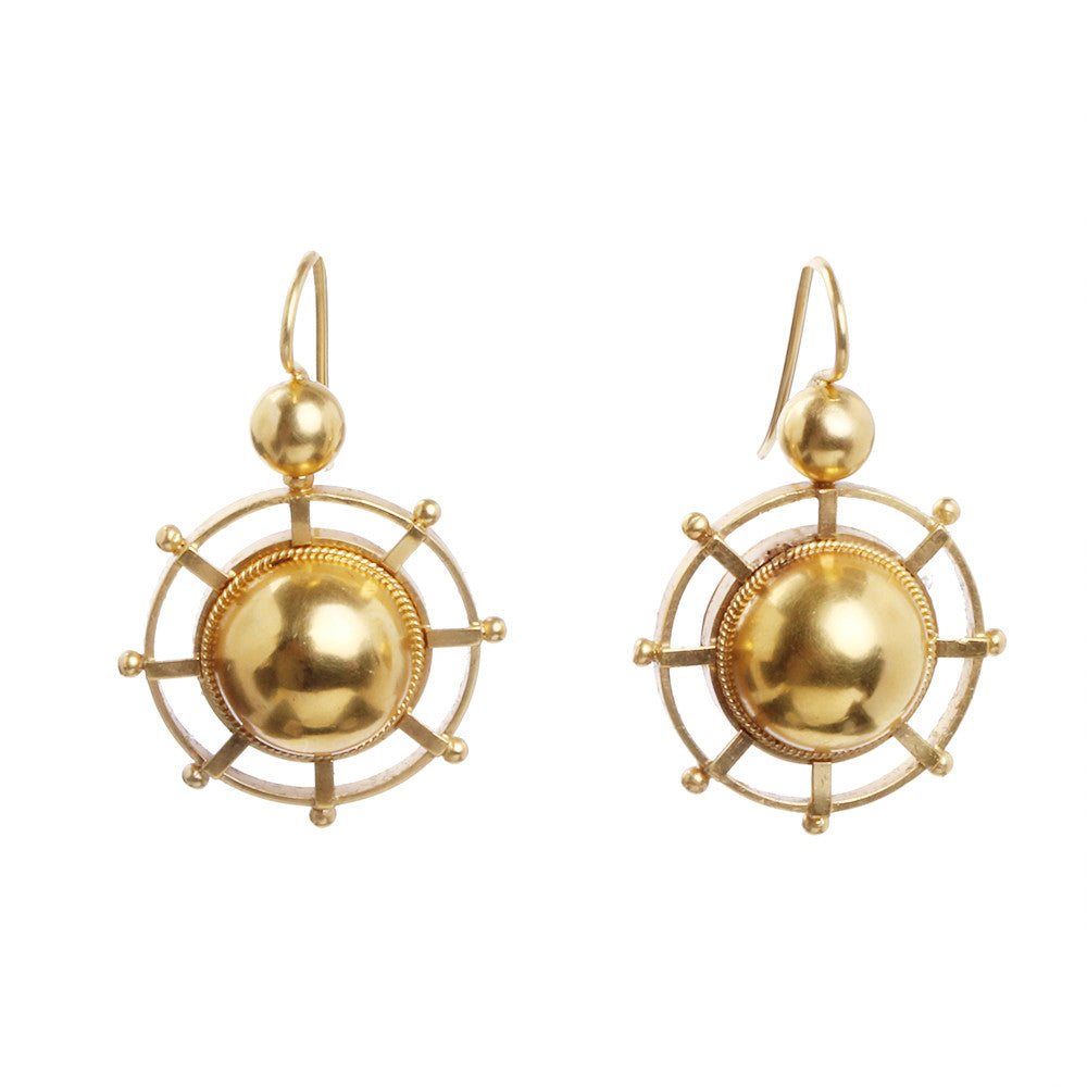 Victorian gilded silver wheel earrings. Nice little Victorian era earrings. Perfect for every day. English in origin, circa 1880.