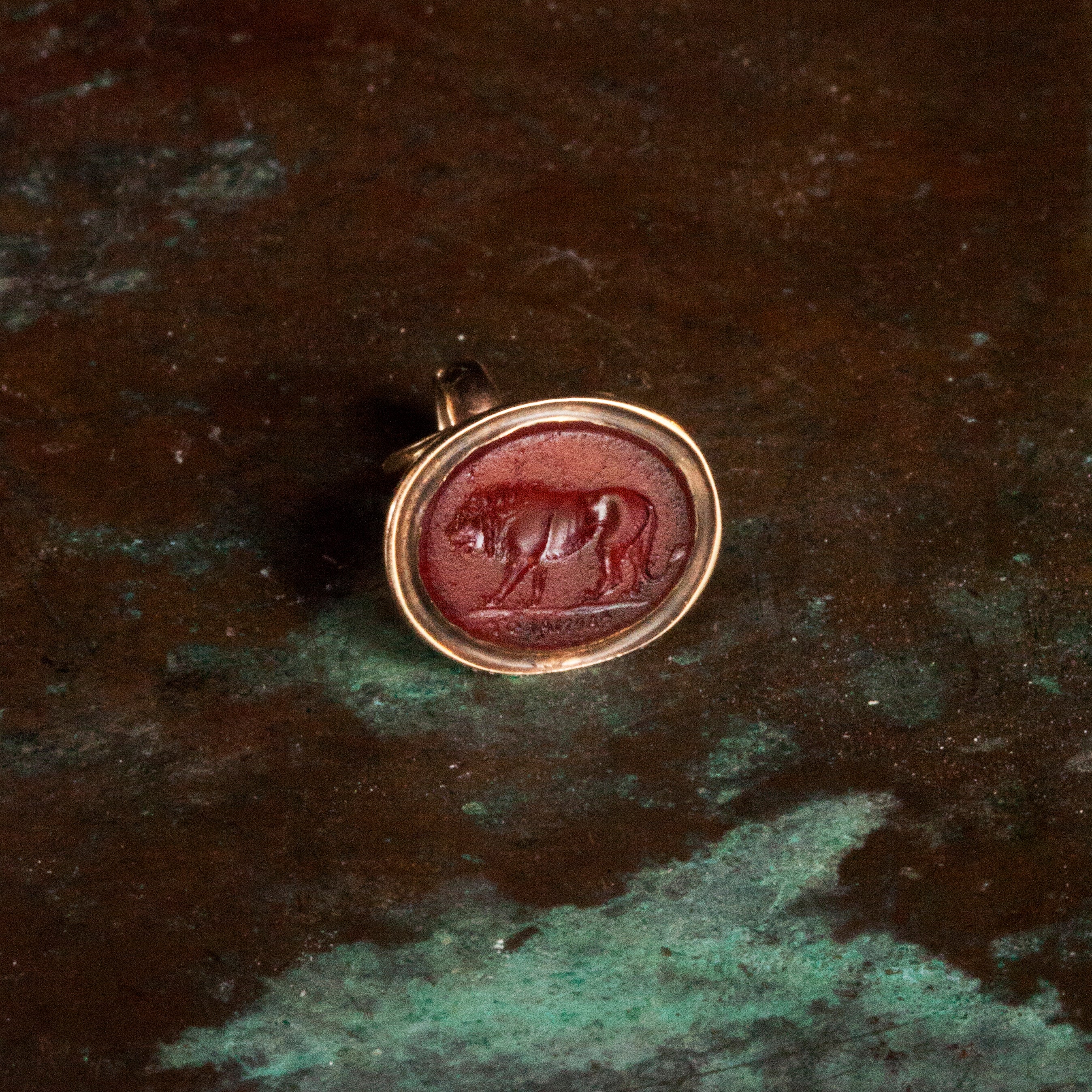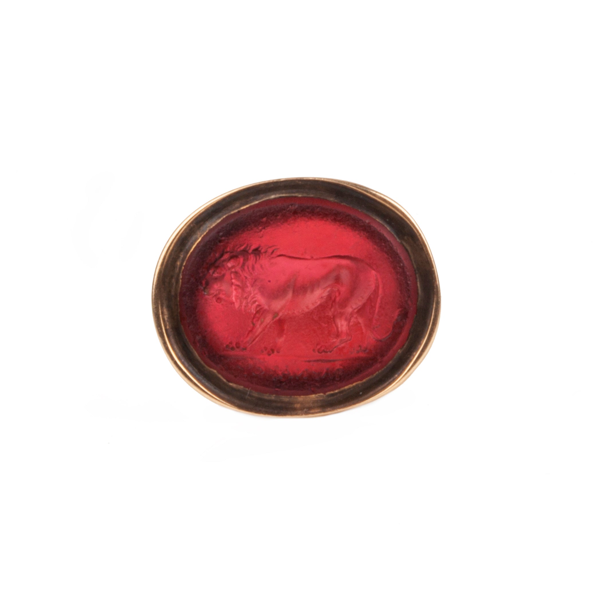 Petite Victorian garnet Lion intaglio tassie charm, in 9k gold. Great addition to a charm collection. English in Origin.
