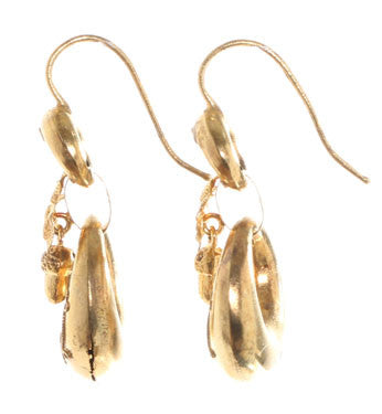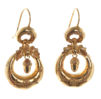 Mid 19th century earrings in 18k bloomed gold. Lovely acorn details. English in origin.