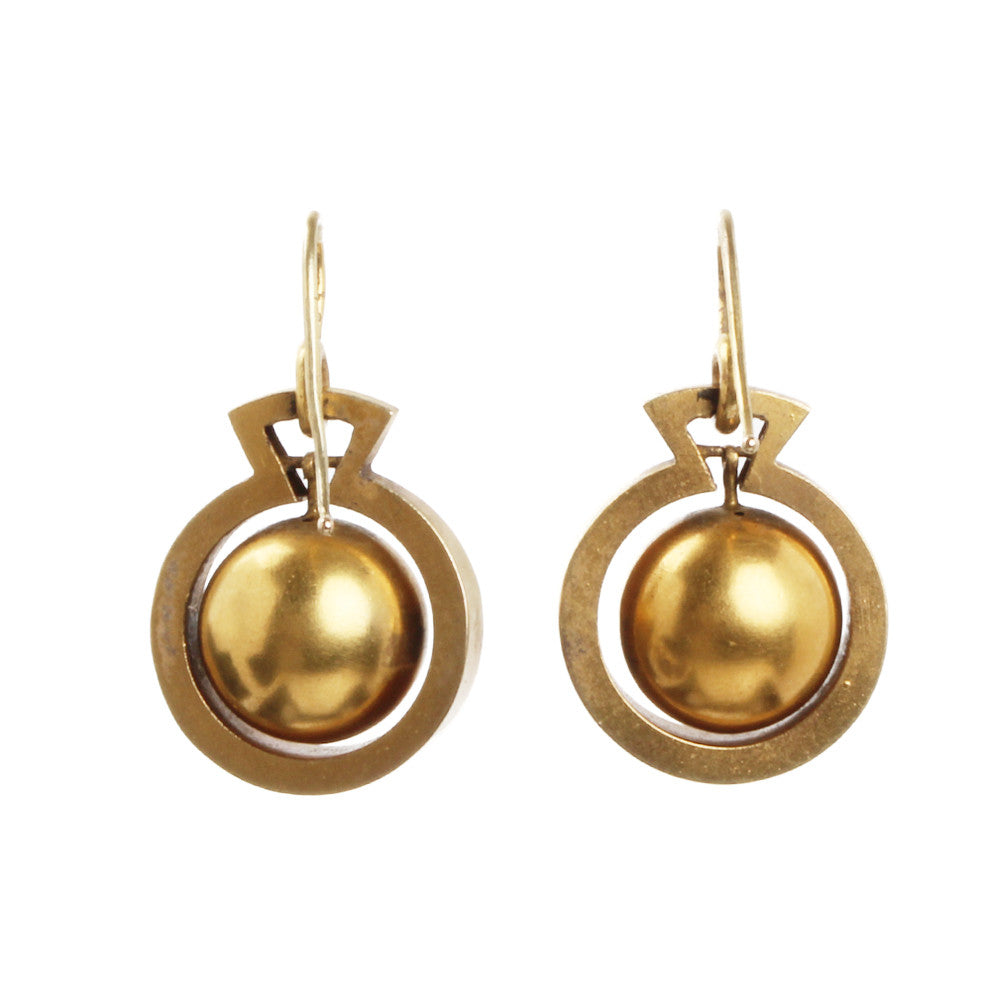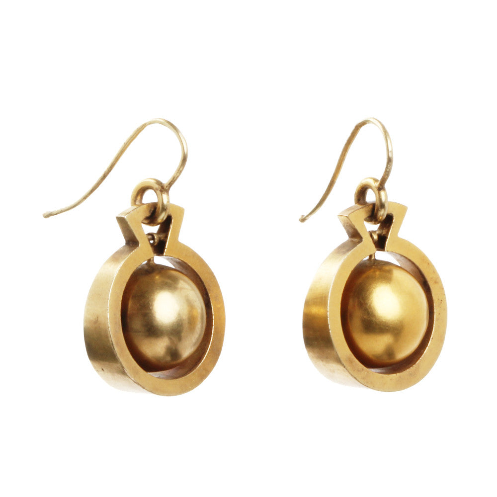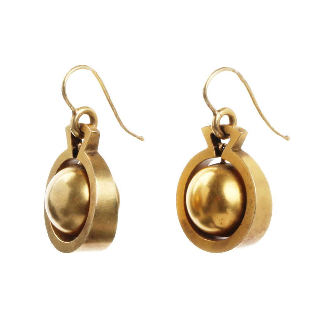 Late 19th century gold ball drop earrings, 15k gold. Perfect for every day wear. These have great movement when worn. English in origin. Circa 1870.