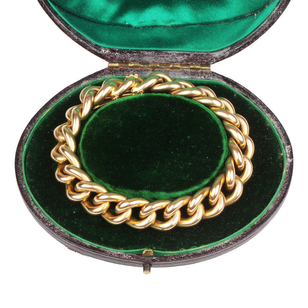 Victorian gold link bracelet, 15ct gold. In original fitted box.