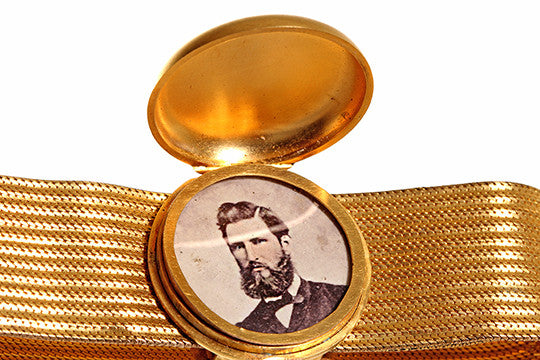 Photograph of a Victorian period gentleman with hand coloring inside. Although it can be easily replaced with your own.