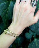 Victorian gold snake bangle. 15K yellow gold. English. Inner circumference measures approximately 5.75. Double hinge allows for somewhat of a flexible fit.
