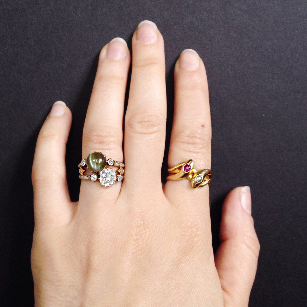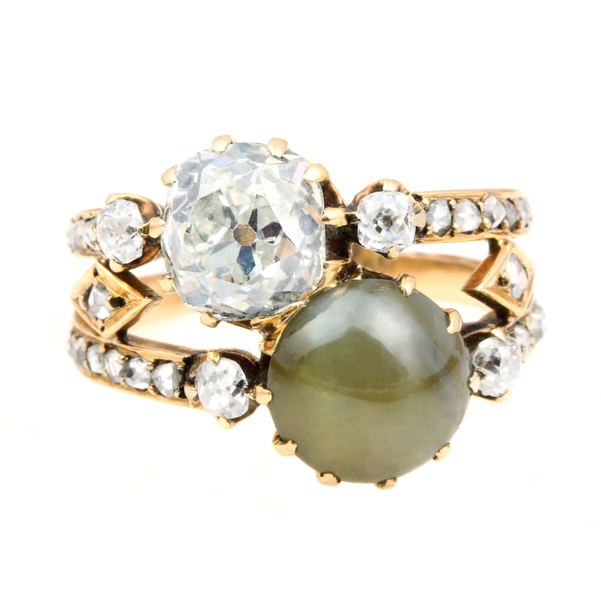 Victorian Old Mine Cut Diamond And Cats Eye Chrysoberyl Ring