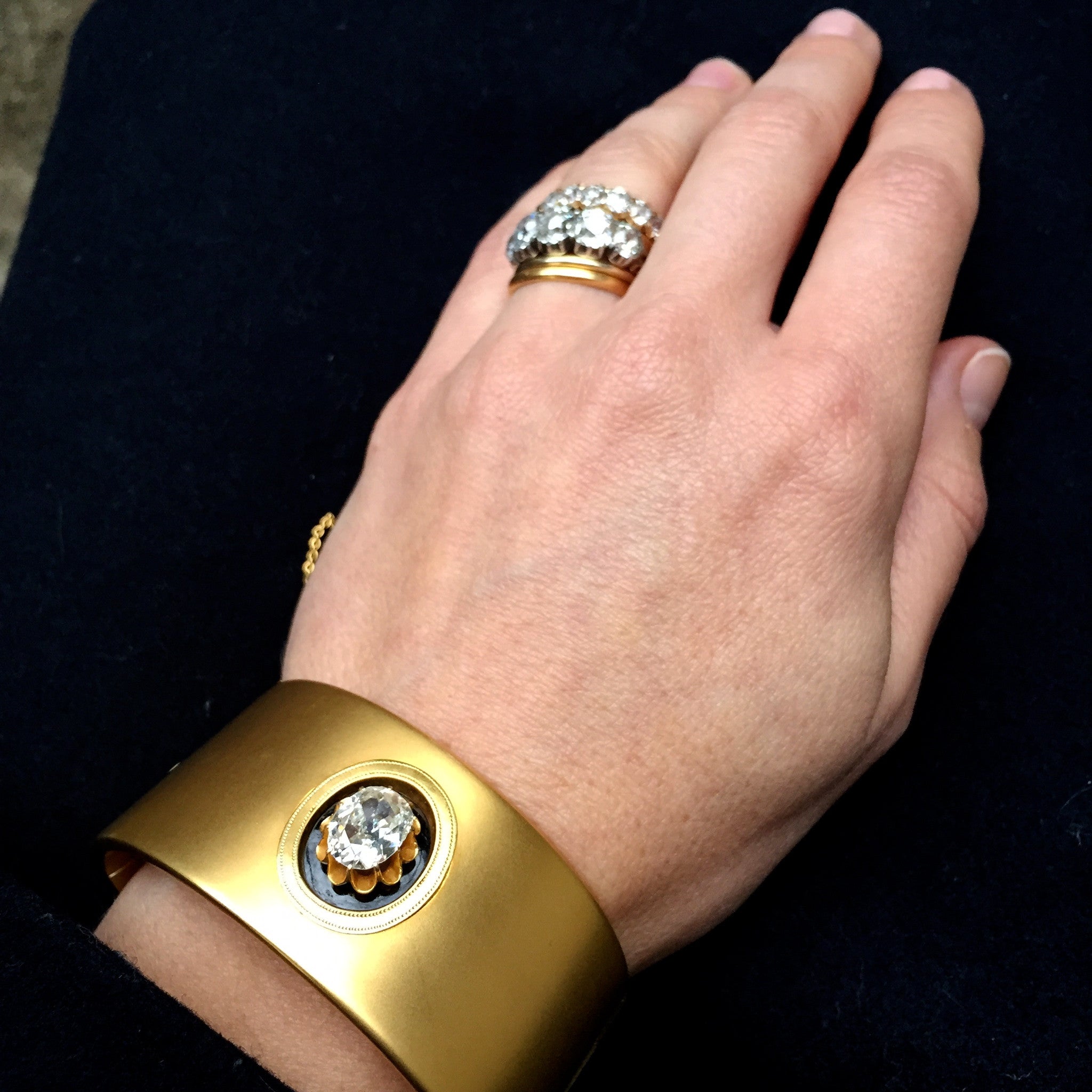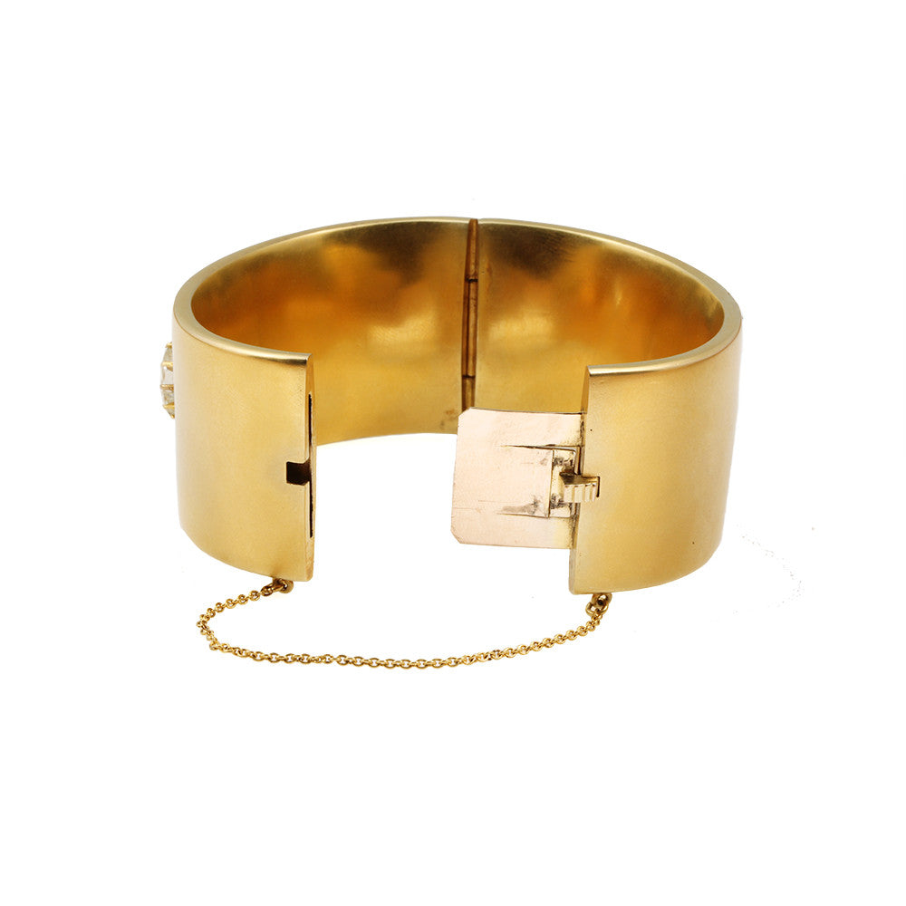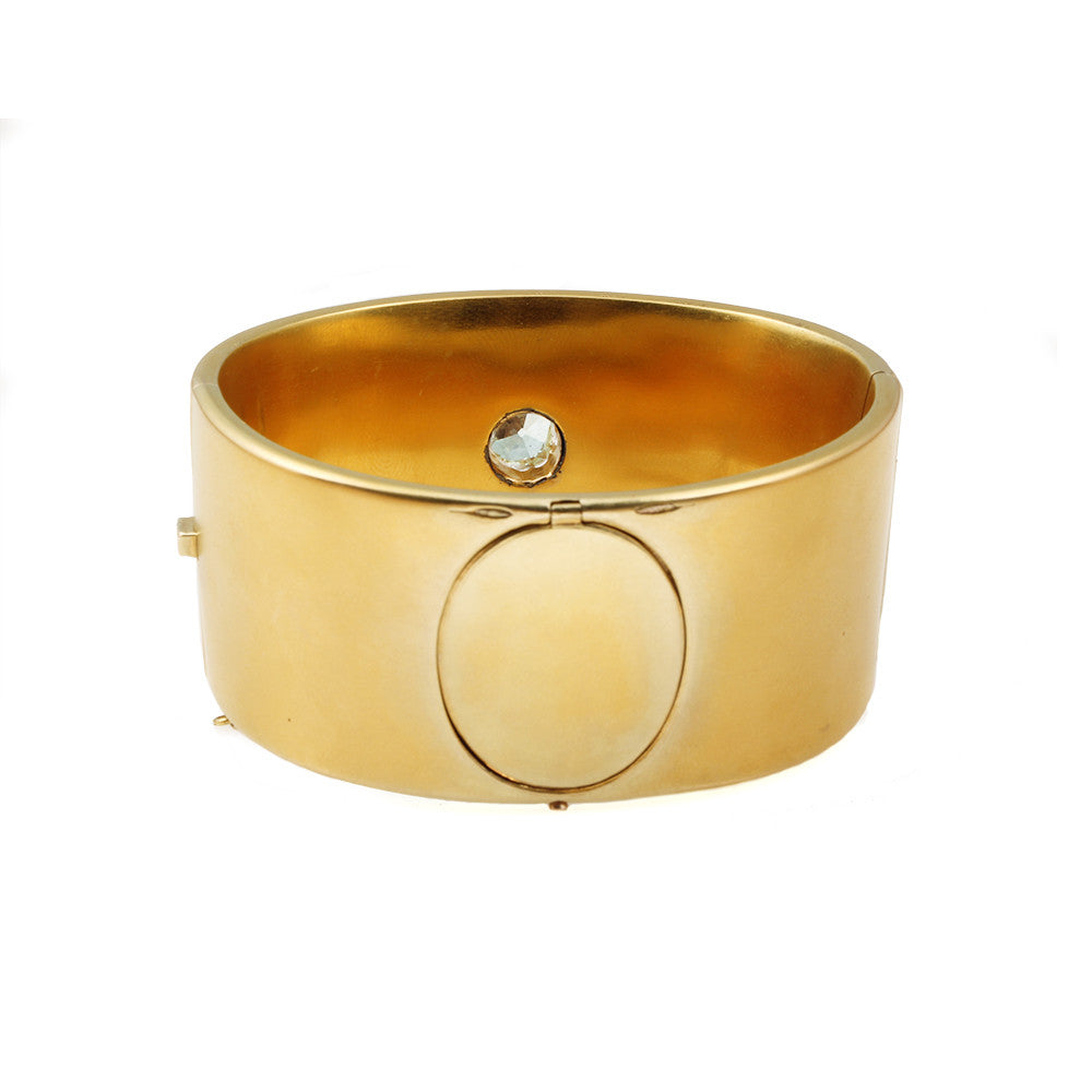 Victorian Gold Bangle with Old Mine Cut Diamond and Hidden Locket