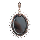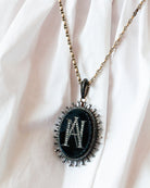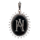 19th Century onyx and diamond locket, in gold. Bold design with "NA" or "AN" monogram spelled out in rose cut diamonds. Additional rose cut diamonds make up a beautiful radiating detail. The original glass is intact on the reverse side. English in origin. Circa 1870.