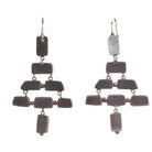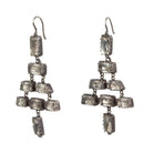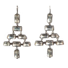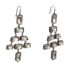 Victorian era white paste earrings, set in silver. Unusual geometric modernist style. English in origin. Circa 1870.
