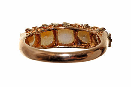 Size 6.25 can be sized. Shown on model with our Victorian Black Enamel & Five Diamond Ring and model's own early 19th century mourning ring.