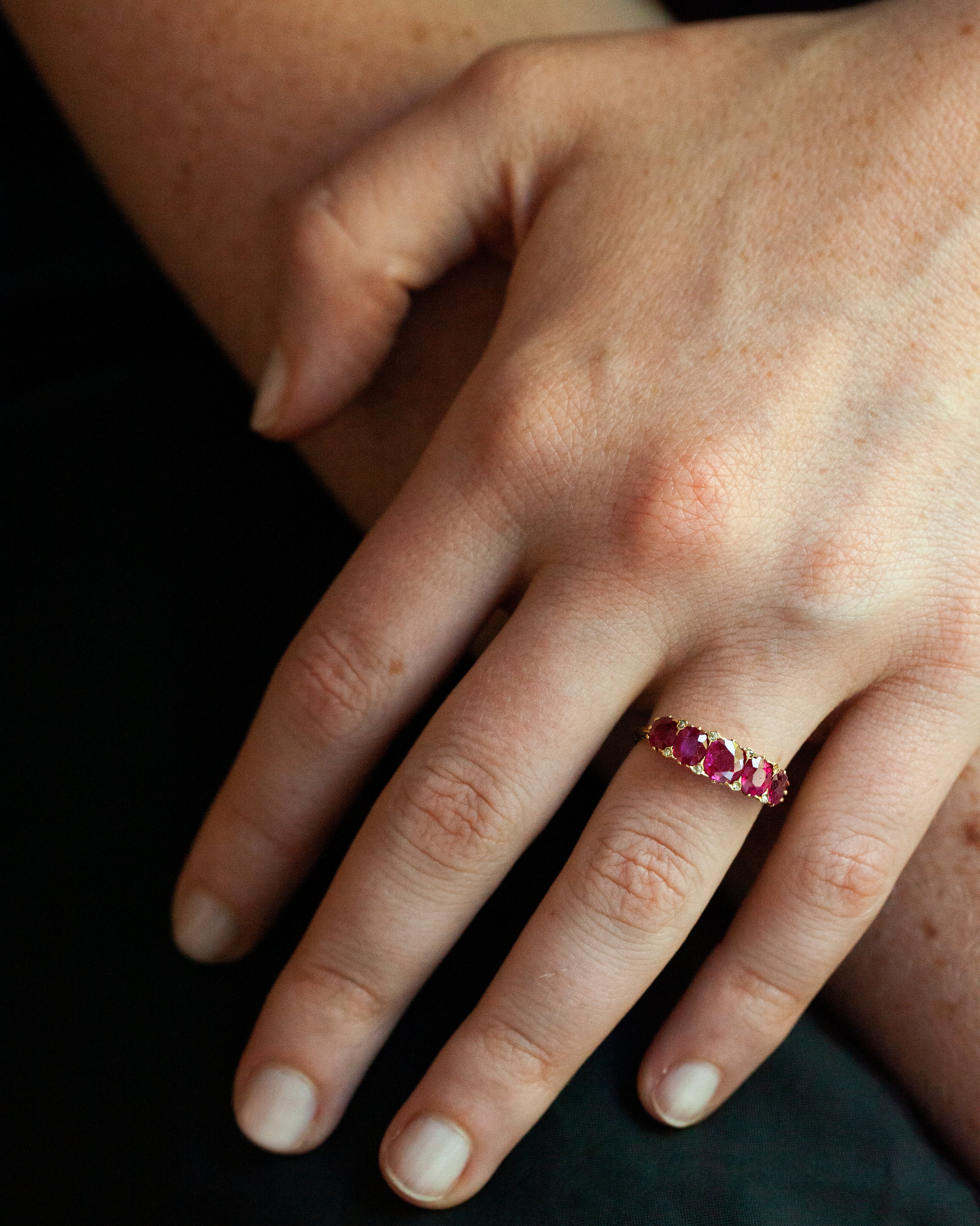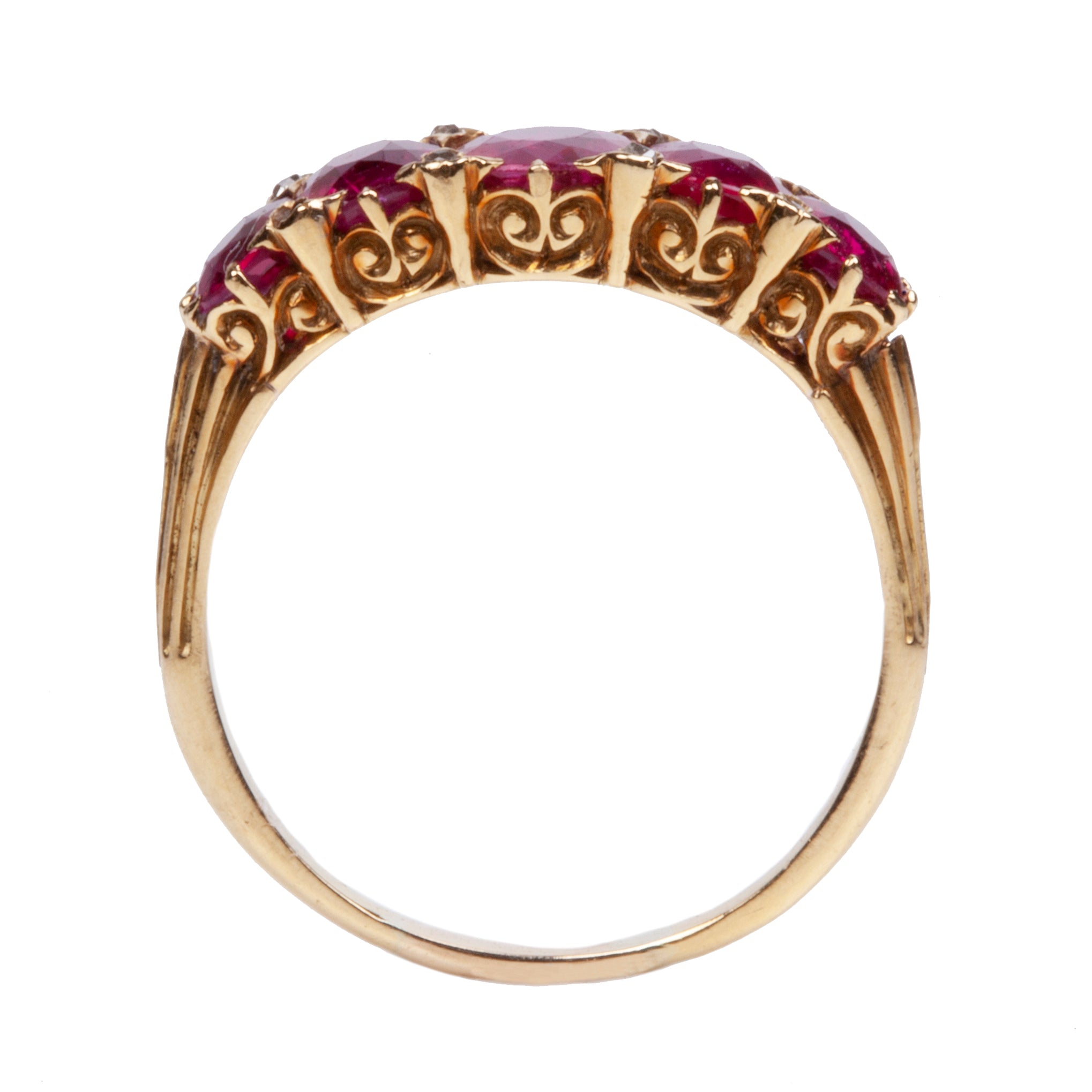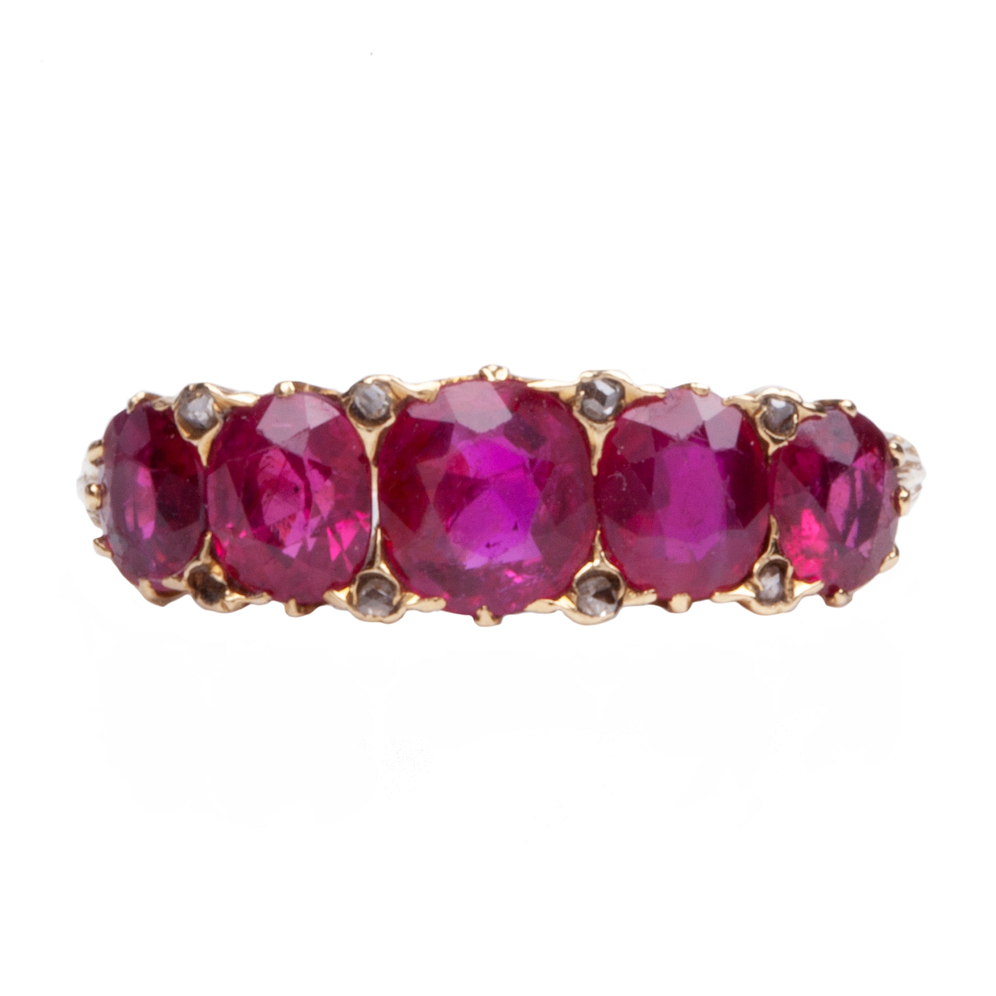 Late Victorian Era Five Stone Ruby and DIamond Ring